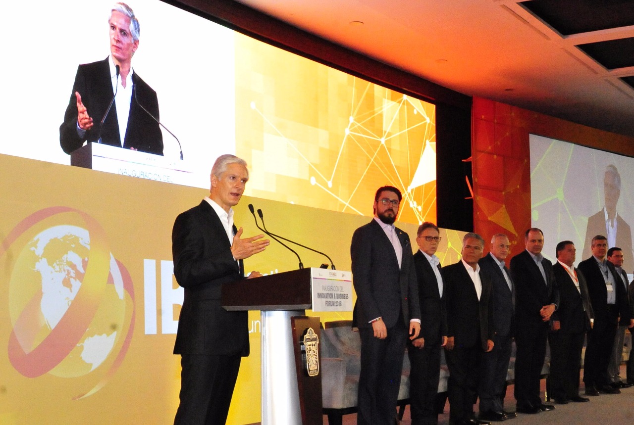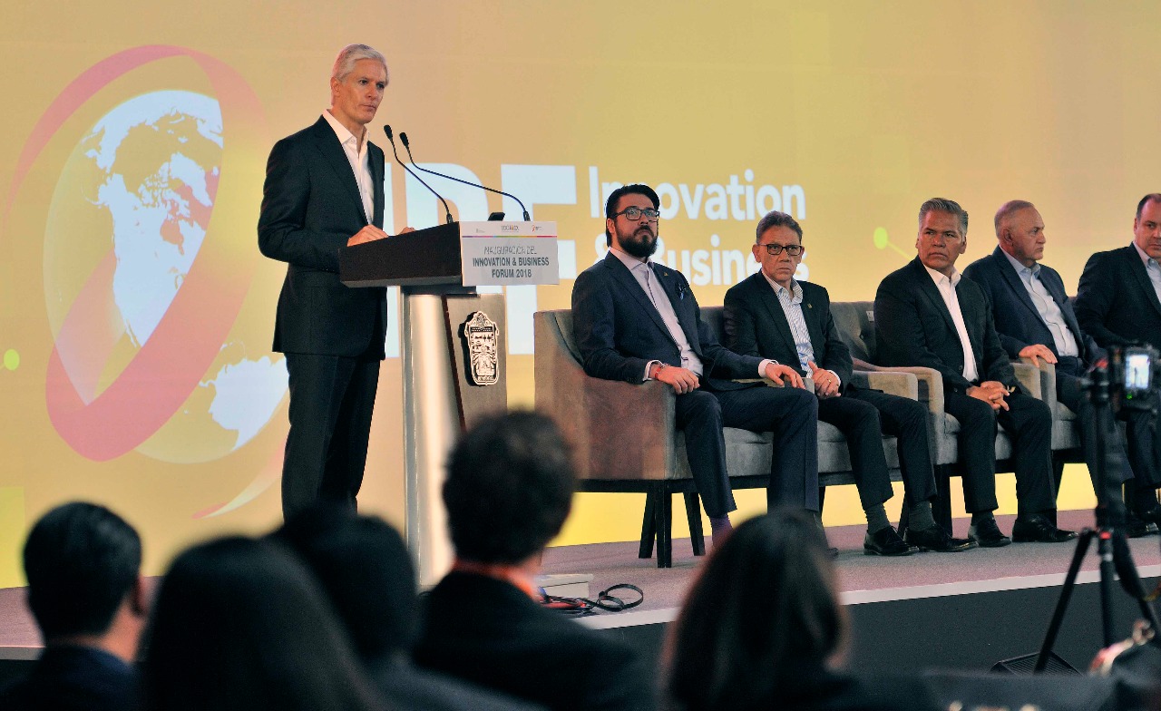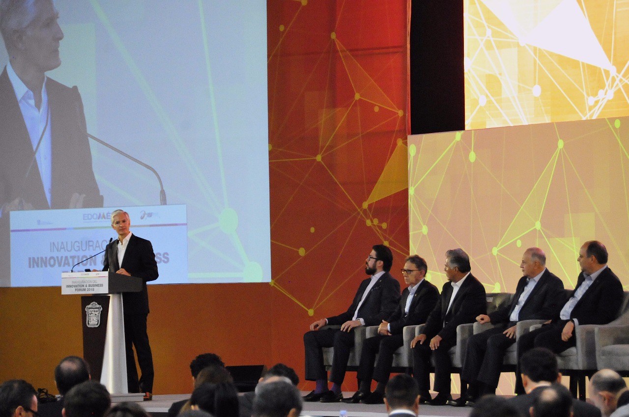 Toluca, Estado de México, 10 de octubre de 2018.- Al inaugurar el Innovation & Business Forum 2018, el Gobernador Alfredo Del Mazo Maza afirmó que el Estado de México le apuesta al impulso de la innovación para alcanzar avances tecnológicos, modernizar la economía estatal, así como elevar la competitividad y productividad de la entidad.