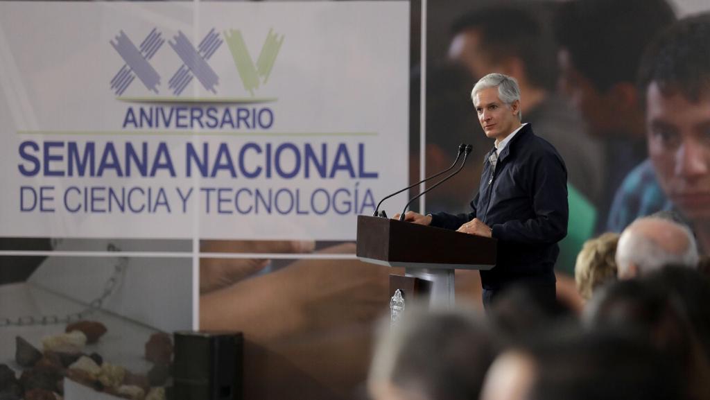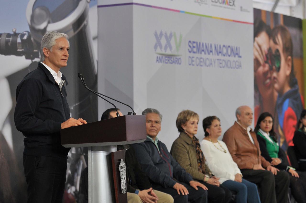 En la apertura de la XXV Semana Nacional de Ciencia y Tecnología, en la Plaza de los Mártires en Toluca, el mandatario estatal aseguró que su administración tiene el reto de apoyar los campos científico y tecnológico, con el propósito de transitar a una economía del conocimiento, ya que la ciencia ocupa un relevante papel para comprender la naturaleza, afrontar los riesgos del cambio climático o construir una sociedad más equitativa.