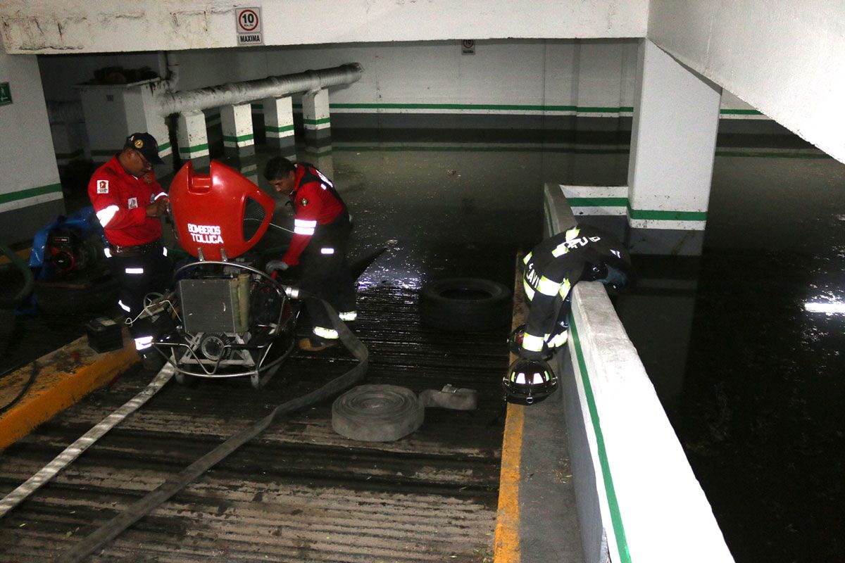 Tras la tormenta, que en algunos sitios incluyó granizo y fuertes rachas de viento, elementos de la Dirección de Seguridad Ciudadana, Protección Civil y Bomberos, así como personal de Servicios Públicos y el Organismo de Agua y Saneamiento de Toluca atendieron 34 servicios por encharcamientos, la gran mayoría ocurrieron en domicilios particulares, uno en la escuela primaria Josefa Ortiz de Domínguez en la colonia Los Ángeles y otro en el estacionamiento del edificio Plaza Toluca, en el Centro Histórico.