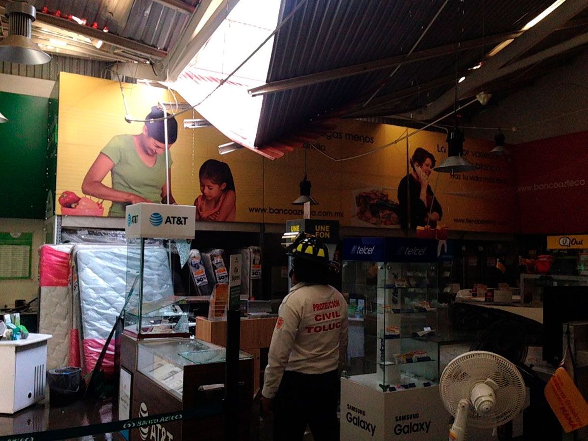 Asimismo, las autoridades atendieron la caída de cinco techumbres, entre ellas la del estacionamiento del Tribunal Electoral; el patio central del Jardín de Niños Trinidad Rodríguez, en el Barrio de San Bernardino, y el de una iglesia en la colonia Del Parque, servicios a los que acudieron de inmediato elementos de Protección Civil y policía municipal, quienes acordonaron las áreas y realizaron el retiro de estructuras.