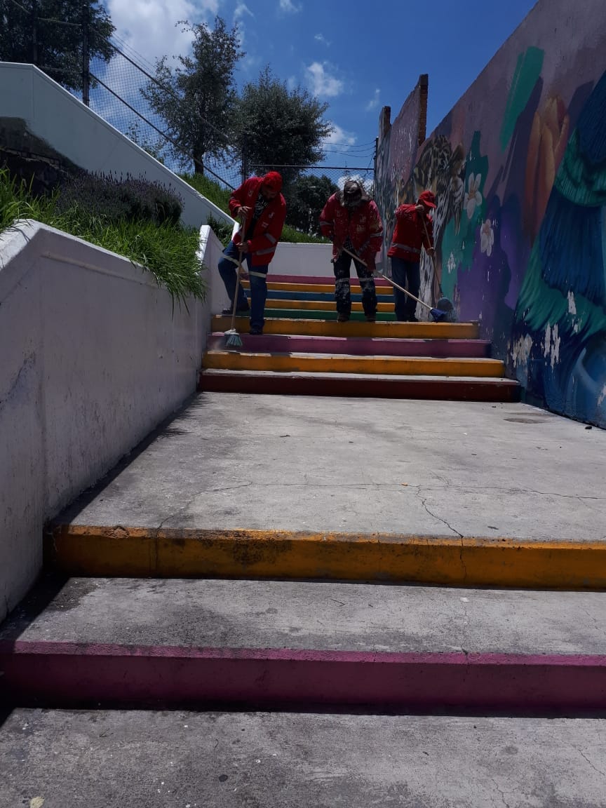 - Lavado y barrido en espacios comunes, poda de áreas verdes, jardinería, aplicación de pintura en muros y herrería.