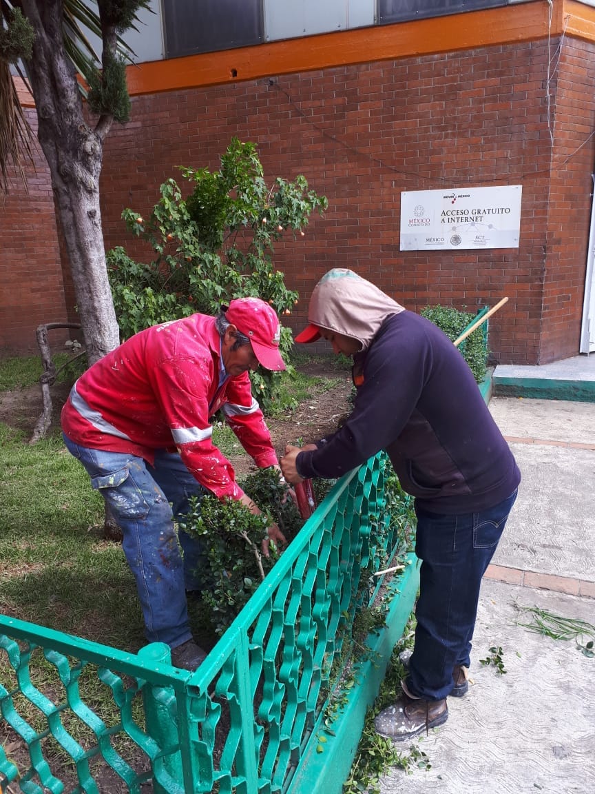 Asimismo, y con el propósito de que los visitantes pasen un momento agradable y realicen sus compras en un espacio digno, se realiza la limpieza de los principales accesos del Mercado 16 de Septiembre, la poda de pasto, arbustos, árboles, retiro de hoja seca y riego de plantas en las jardineras del Mercado Morelos.