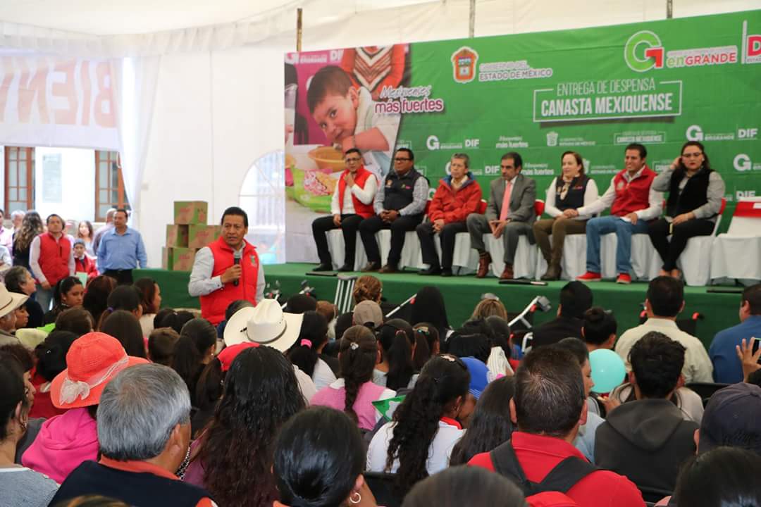 Con la finalidad de promover la sana alimentación y mejorar la calidad de vida de las localidades más vulnerables, el ayuntamiento de Zinacantepec que preside Manuel Castrejón Morales en conjunto con Carolina Alanís Moreno, directora general del DIFEM y Hersson Castrejón Gómez, presidente del DIF municipal, entregaron más de 2 mil 646 despensas del programa CAMEX, “Canasta Mexiquense”.En su intervención, Castrejón Morales, reconoció las acciones que ha realizado el presidente de la República, Enrique Peña Nieto y el gobernador del Estado de México, Eruviel Ávila Villegas para el bienestar de todos los ciudadanos.