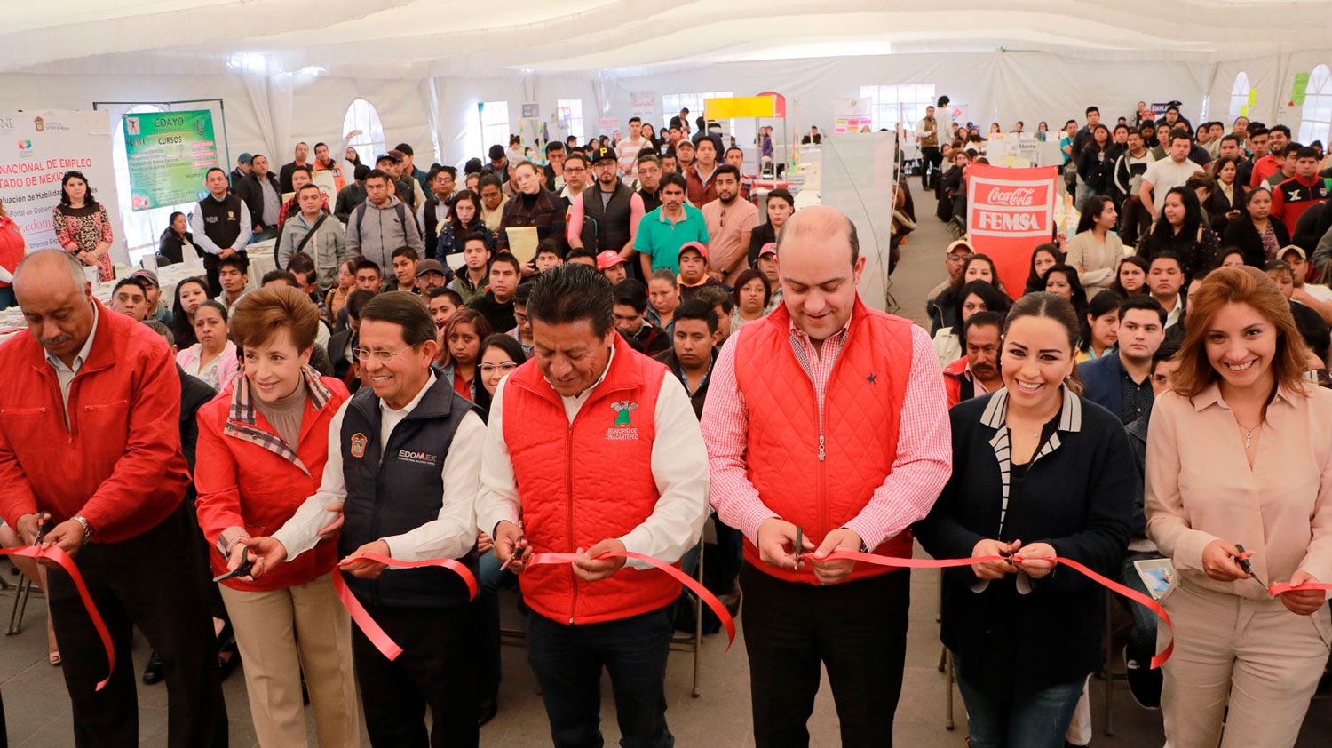 Zinacantepec, Méx.- El gobierno municipal de Zinacantepec, a través de la Sexta Regiduría y la Oficina Municipal de Empleo en coordinación con la Secretaría del Trabajo, inauguraron en la Plaza Cívica, la Primera Feria del Empleo Zinacantepec 2018, con la finalidad de brindar ofertas de empleo a la ciudadanía.