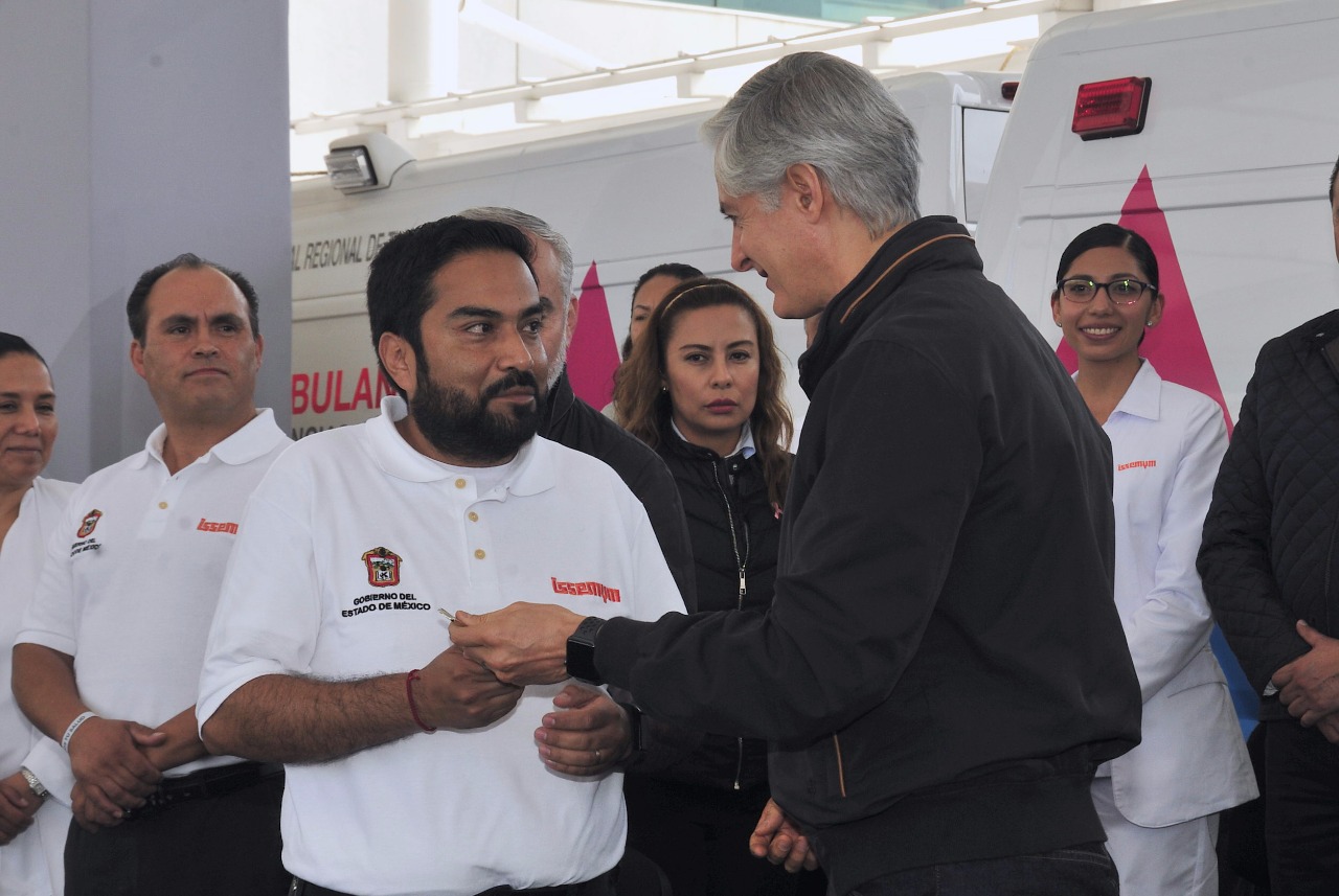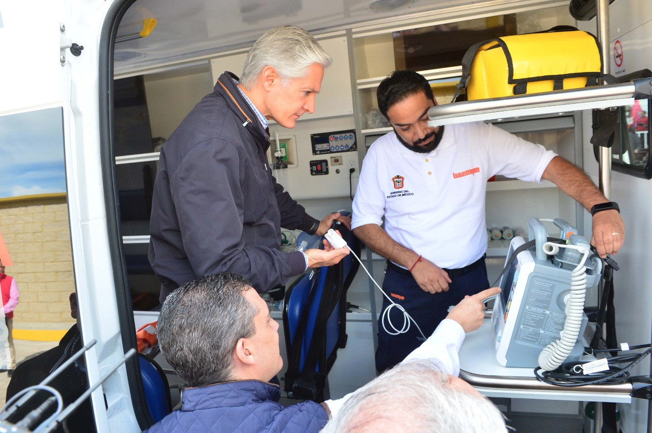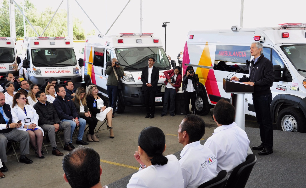 Detalló que 25 son ambulancias de traslado, 10 de urgencias básicas y 7 de urgencias avanzadas, que darán servicio a todos los afiliados del ISSEMYM.
