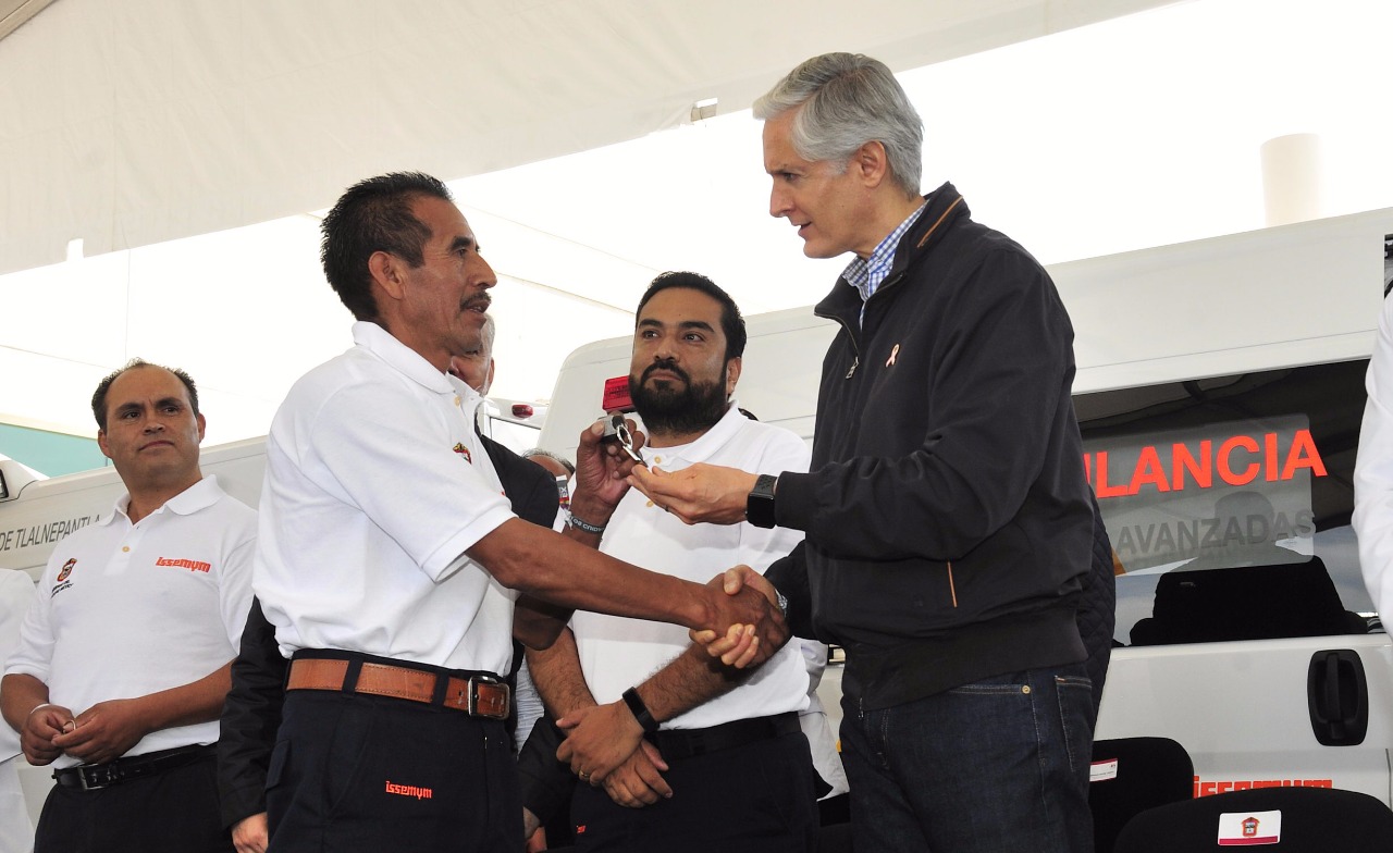 “Hoy nos reunimos aquí para prácticamente renovar la mitad de la flota de ambulancias que tiene el Instituto de Seguridad Social del Estado de México y Municipios, para brindarle un mejor servicio a los trabajadores que tienen el derecho a recibir este sistema por parte del ISSEMYM, y en donde estoy seguro que además serán utilizadas con profesionalismo, con gran entrega y con gran dedicación”, afirmó.