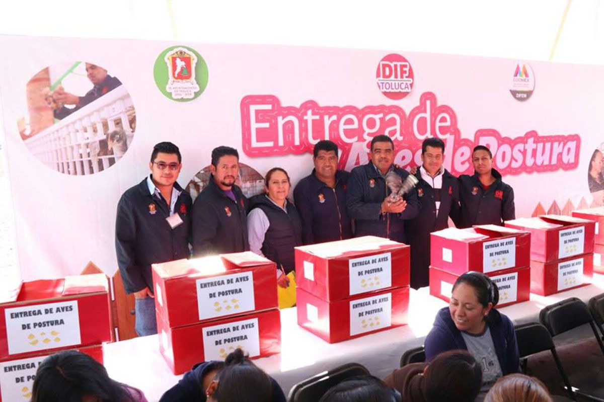Toluca, Estado de México.- Con el objetivo de contribuir a la economía familiar y cuidar la salud nutricional de la población más vulnerable de la capital, el Sistema Municipal DIF Toluca entregó 200 paquetes de aves de postura a igual número de familias de la subdelegación de San Diego Linares, en San Pablo Autopan.