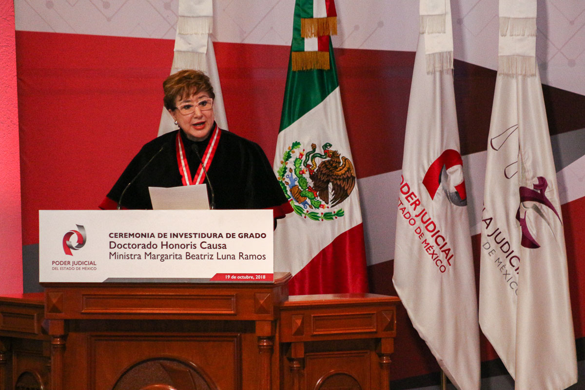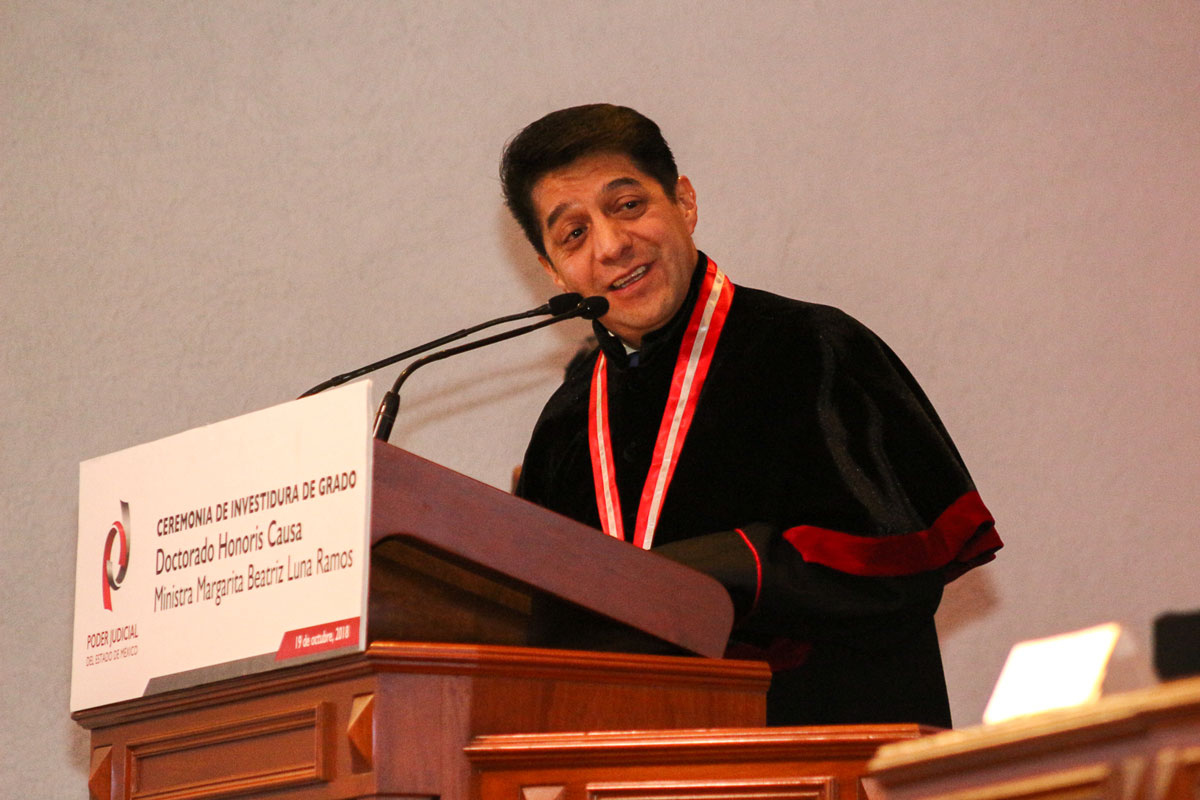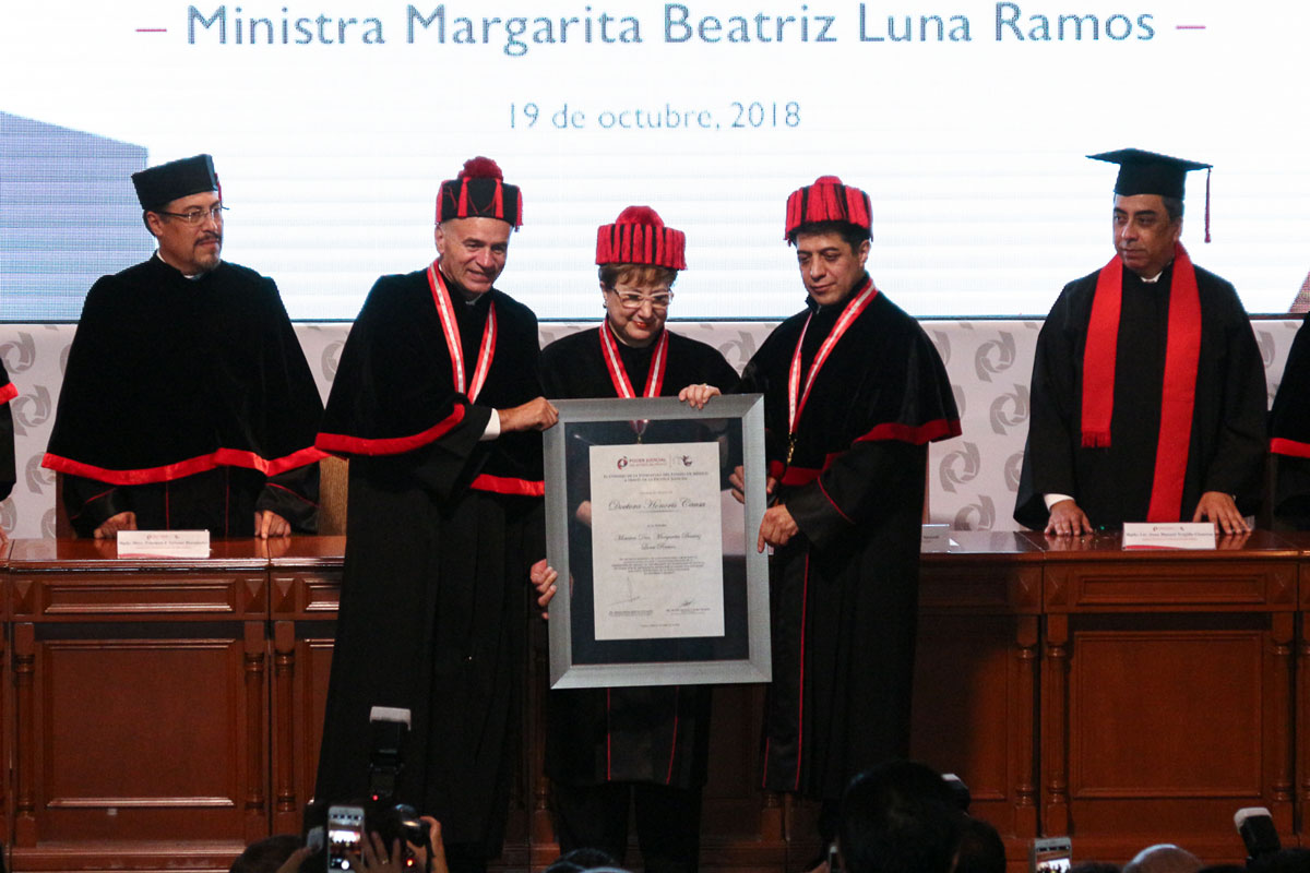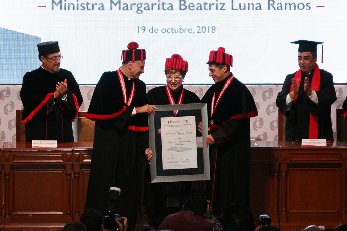 Lo anterior durante la Ceremonia de Doctorado Honoris Causa que se entregó a la Ministra de la Suprema Corte de Justicia de la Nación, Margarita Beatriz Luna Ramos, donde agregó que la homenajeada al paso de los años, se ha convertido en un referente nacional por su trabajo y dedicación, por la lucha de la equidad de género y los derechos de la mujer.