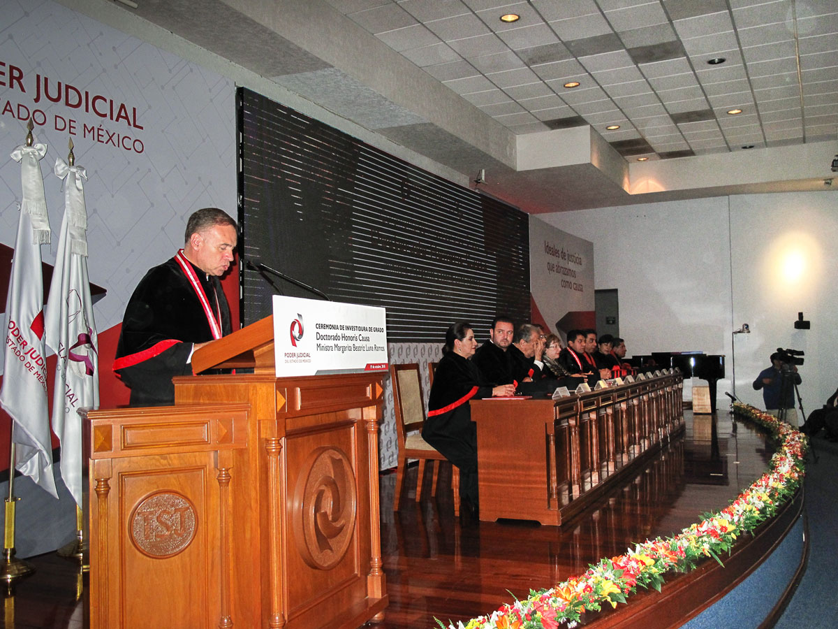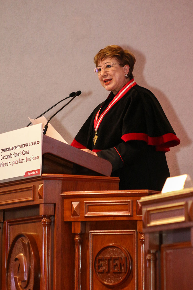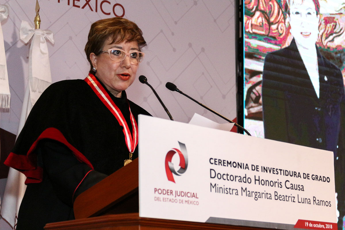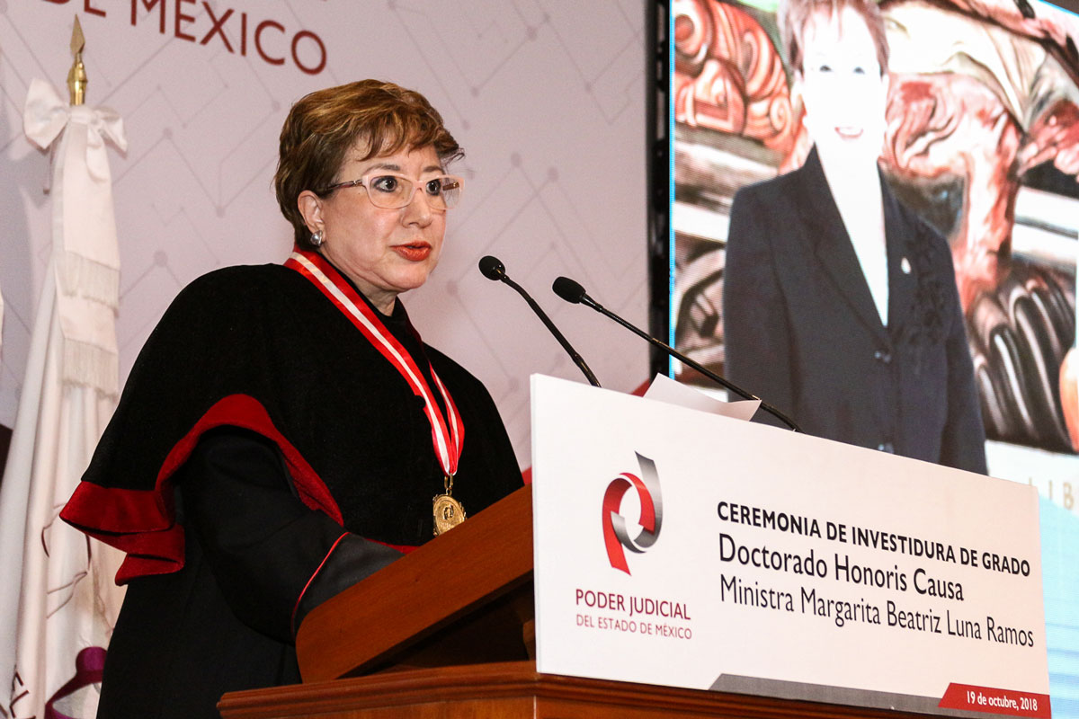 Lo anterior durante la Ceremonia de Doctorado Honoris Causa que se entregó a la Ministra de la Suprema Corte de Justicia de la Nación, Margarita Beatriz Luna Ramos, donde agregó que la homenajeada al paso de los años, se ha convertido en un referente nacional por su trabajo y dedicación, por la lucha de la equidad de género y los derechos de la mujer.