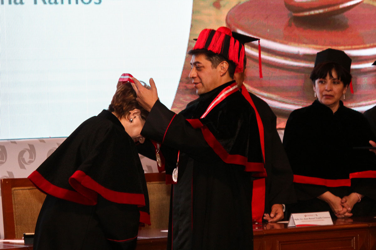 El Magistrado refirió que el Poder Judicial y el Consejo de la Judicatura se congratularon al embestirla con el Doctorado Honoris Causa por sus méritos profesionales, académicos, personales, porque es ejemplo de esfuerzo y perseverancias, “necesitamos mujeres con determinación para consolidar el legado que ha realizado a lo largo de su vida”.