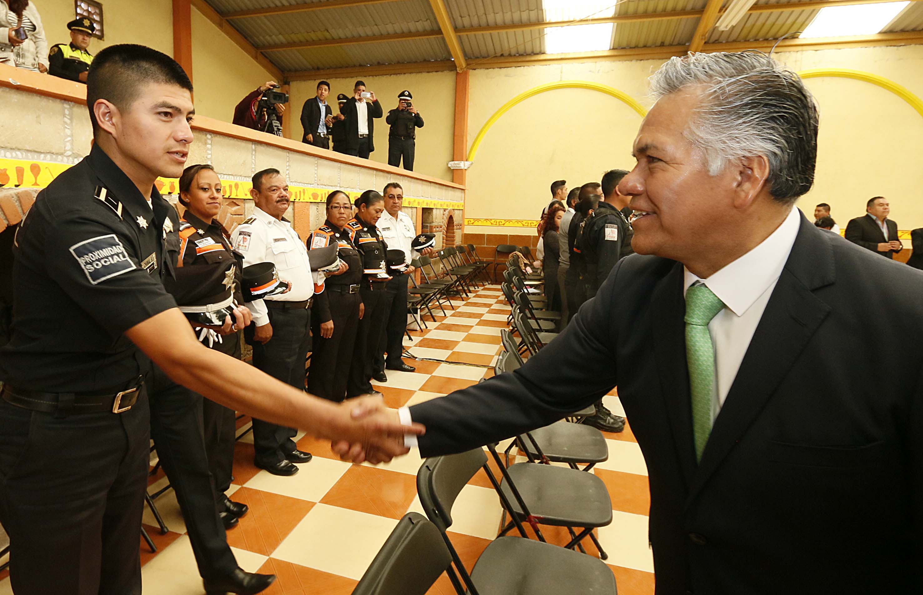 En este contexto, Zamora Morales entregó dos unidades móviles de primer respondiente, 15 nombramientos –de manera simbólica-, así como apoyos para becas escolares y remodelación de viviendas de policías municipales, con recursos provenientes del Programa de Fortalecimiento para la Seguridad.