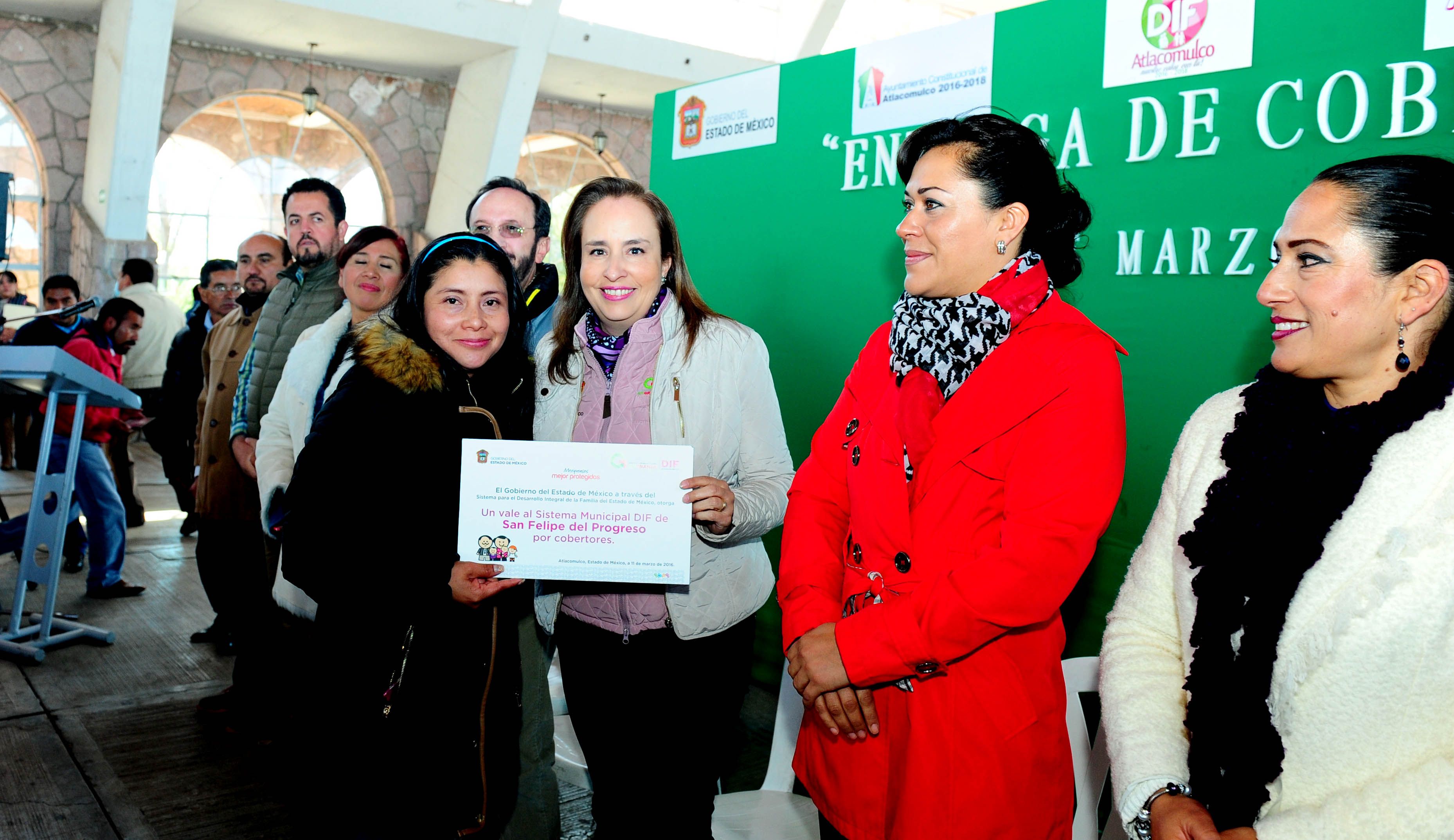 En esta primera etapa se entregaron 300 cobijas a titulares de los Sistemas Municipales DIF regiones II y VIII del norte del estado, que comprenden los municipios de San Felipe Del Progreso, El Oro, Soyaniquilpan, Aculco, Chapa de Mota, Jocotitlán, Jilotepec, Temascalcingo, Morelos, Ixtlahuaca, Atlacomulco, San José del Rincón, Timilpan, Acambay y Polotitlán.