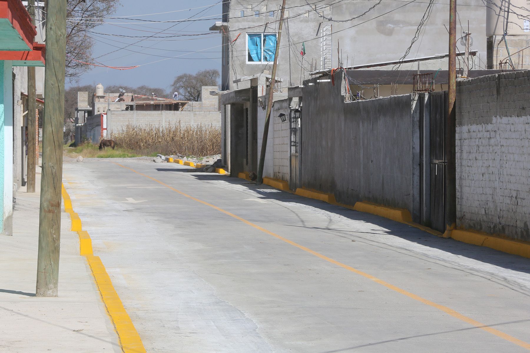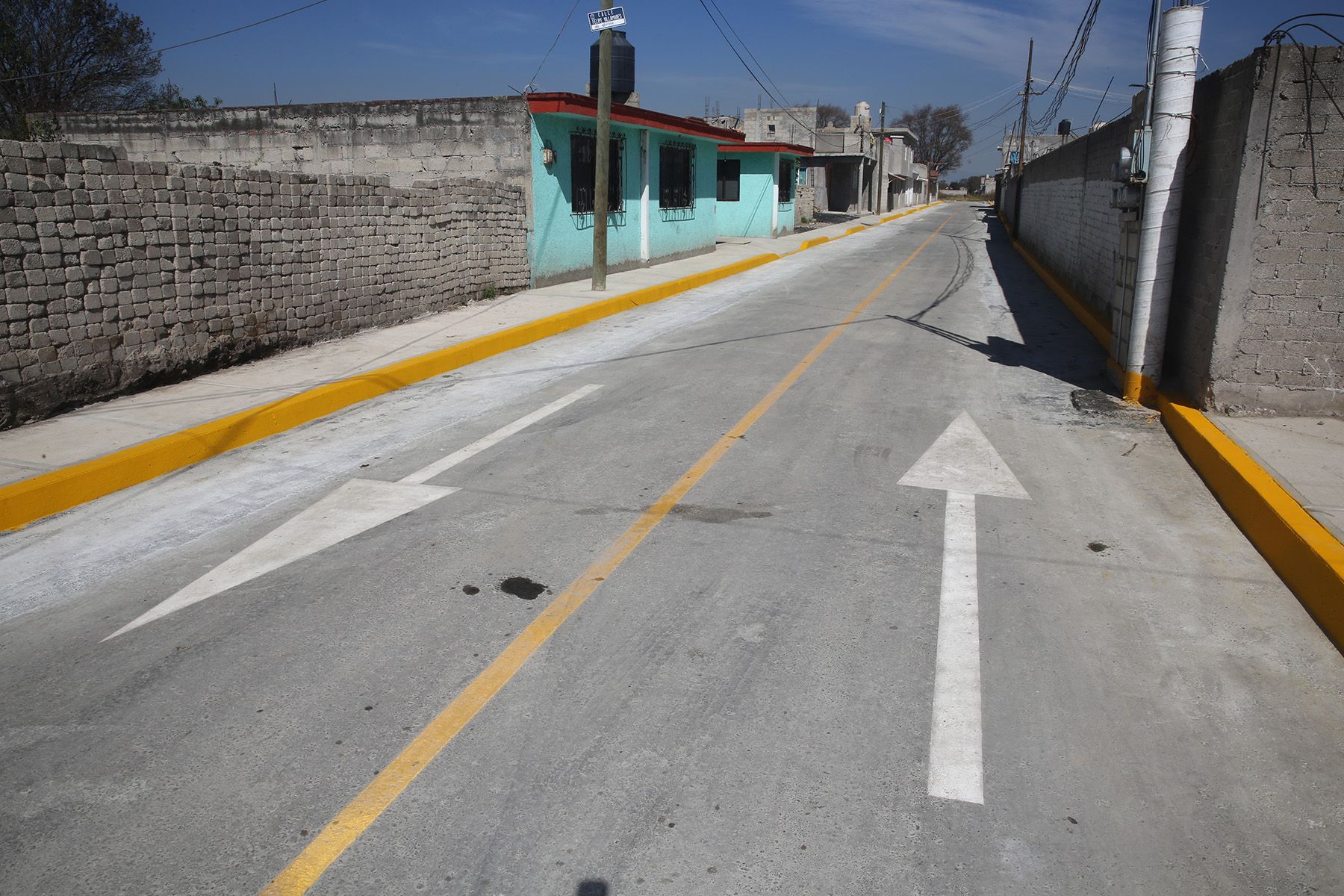 En San Salvador Tizatlalli, se constató la culminación de los trabajos de pavimentación, construcción de guarniciones y banquetas en la Prolongación Durazno, entre Adolfo López Mateos y Cadenamiento 0+200, además del adocretado en un tramo de la calle cerrada Nicolás Bravo.