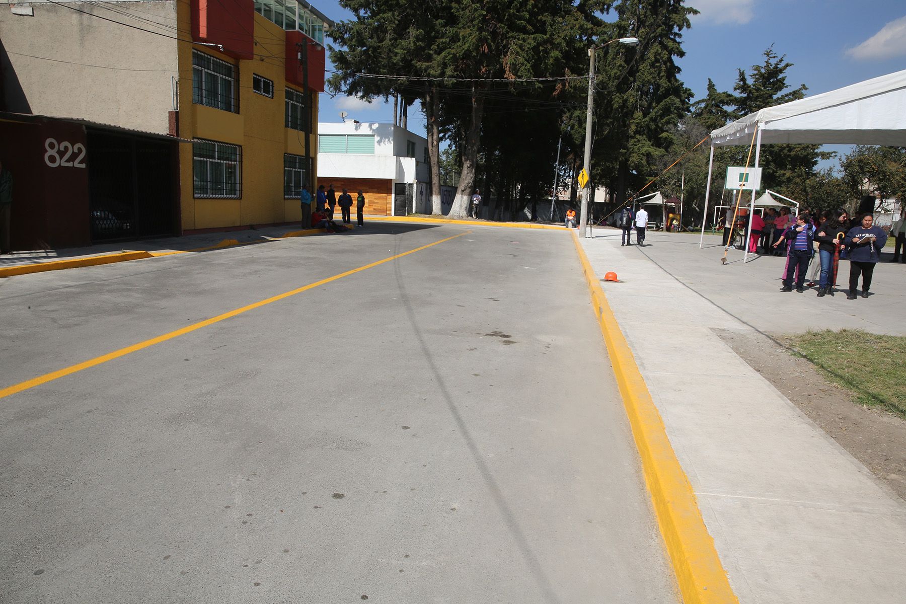Con una inversión de dos millones 179 mil 166 pesos, en la colonia agrícola Bellavista, se entregó la construcción de guarniciones y banquetas en avenida Paseo de la Asunción, entre Adolfo López Mateos y Antiguo camino a Lerma, labores que fueron complementadas con jardinería, señalización, colocación de rejillas pluviales y construcción de rampas para personas con capacidades diferentes.