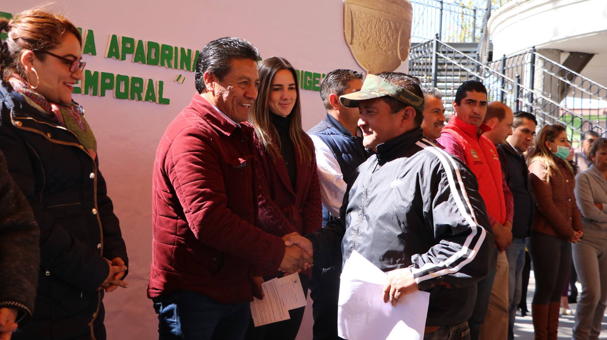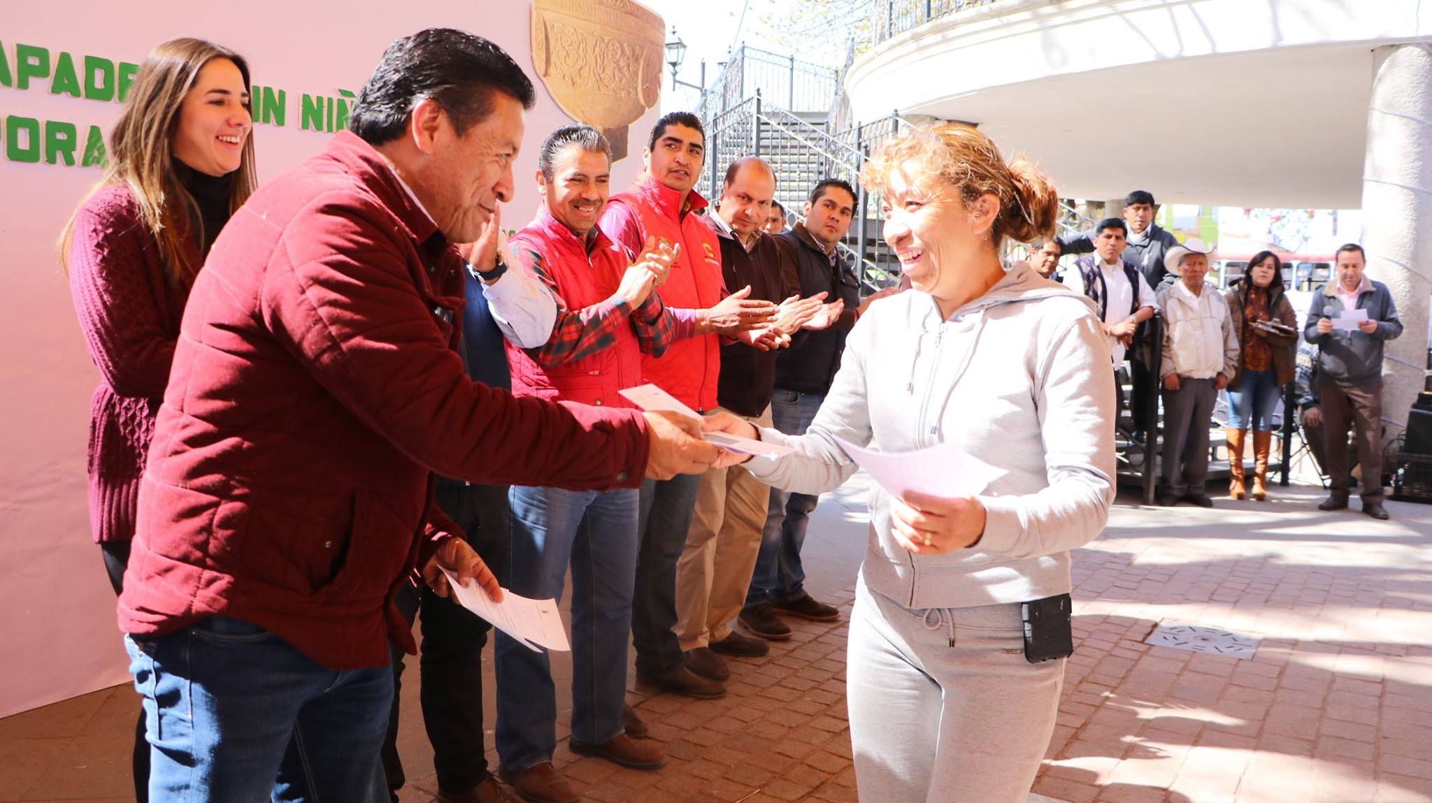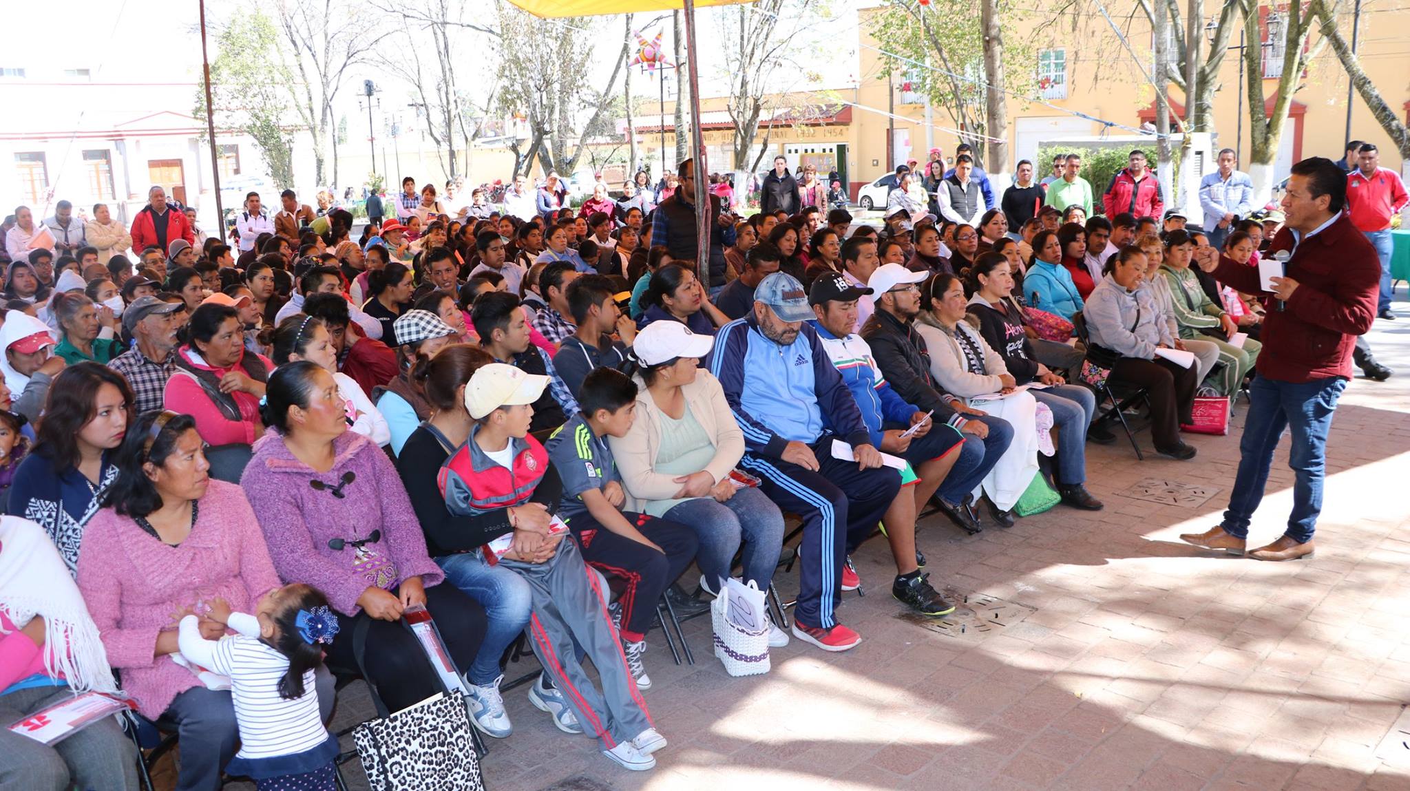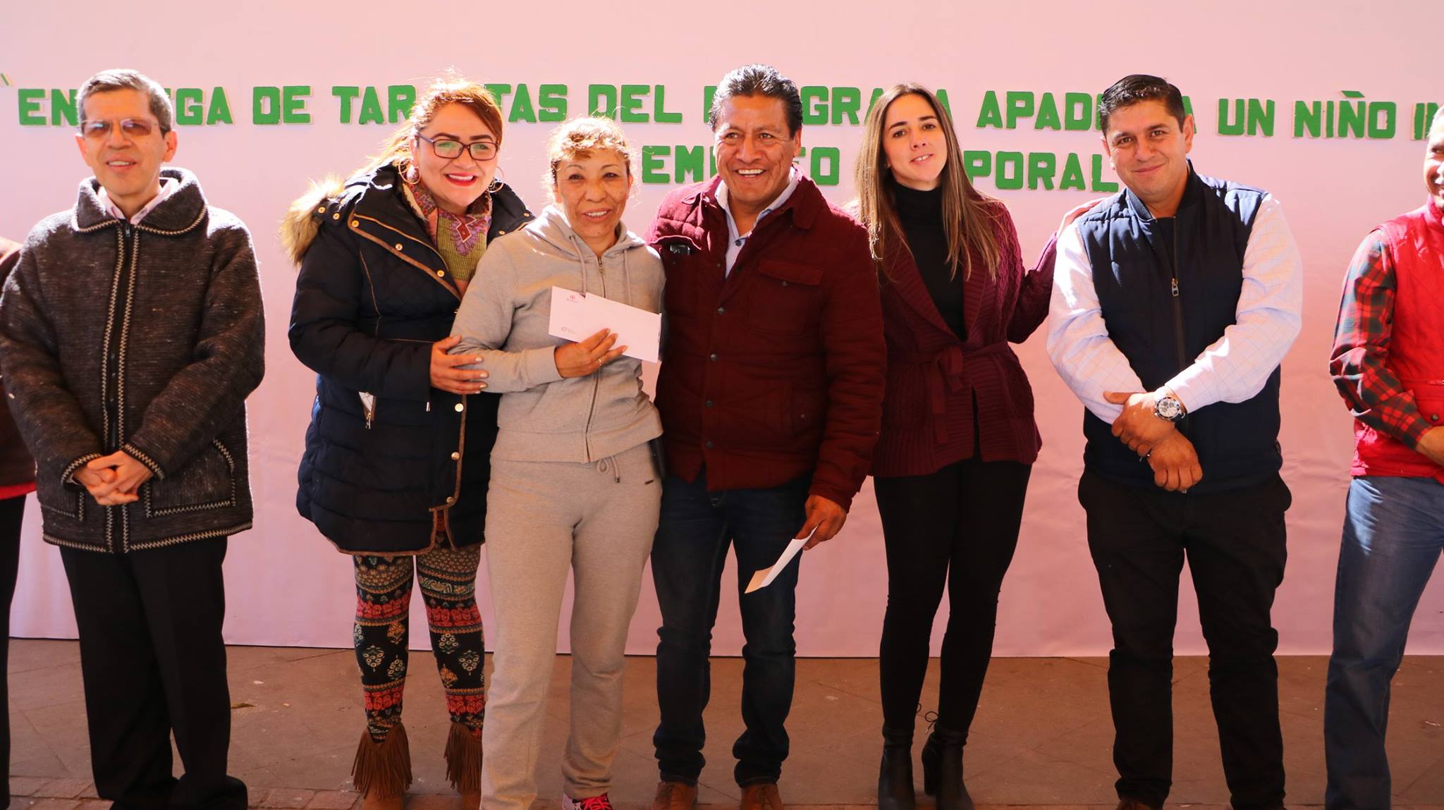 El presidente municipal de Zinacantepec, Manuel Castrejón Morales, acompañado por Alberto Gutiérrez Velázquez, coordinador municipal y responsable del programa Apadrina Un Niño Indígena, Edgar Alfonso Sánchez Muñoz, representante del gobernador del Estado de México y Jessica E. Sánchez Chagollán, coordinadora Regional de Evaluación y Seguimiento, realizo la entrega de 360 monederos electrónicos del programa Apadrina Un Niño Indígena, así como 125 apoyos económicos del programa empleo temporal, a personas de las comunidades de San Antonio Acahualco, San Juan de Las Huertas, y San Luis Mextepec.Al tomar la palabra, Castrejón Morales, manifestó “Los apoyos del programa Apadrina un Niño son un respaldo al ingreso familiar, para impulsar a sus pequeños a seguir estudiando; de igual forma con el programa PET transformamos el entorno de nuestra tierra, con la pinta de fachadas el cual además otorga empleo a 125 zinacantepequenses, esto gracias al respaldo del presidente de la República Mexicana, Enrique Peña Nieto y del gobernador del Estado de México, Eruviel Ávila Villegas” especificó.