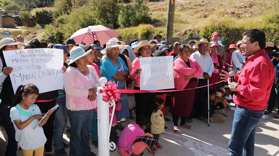 El alcalde de Zinacantepec, Manuel Castrejón Morales, en gira de trabajo inauguró cinco obras consistentes en introducción de drenaje sanitario y pavimentación con concreto hidráulico en Barrio de México, Barrio El Coporo y Loma de González de la comunidad de Santa María del Monte.En el primer punto, vecinos de la calle Wenceslao Labra, calle Oaxaca y Nicolás Bravo de Barrio El Coporo, mostraron su agradecimiento por los trabajos realizados con la introducción de drenaje sanitario y pavimentación, ya que aseguraron eran prioritarias en esas calles; “Estamos muy agradecidos con usted presidente Manuel Castrejón Morales, porque sabemos que estás trabajando con esta obras que no se ven (drenaje) porque son tubos que se entierran, pero son necesidades fundamentales en nuestra comunidad”, manifestó Ángel Cerro Cantinca, durante la inauguración de tres obras en dicho Barrio.
