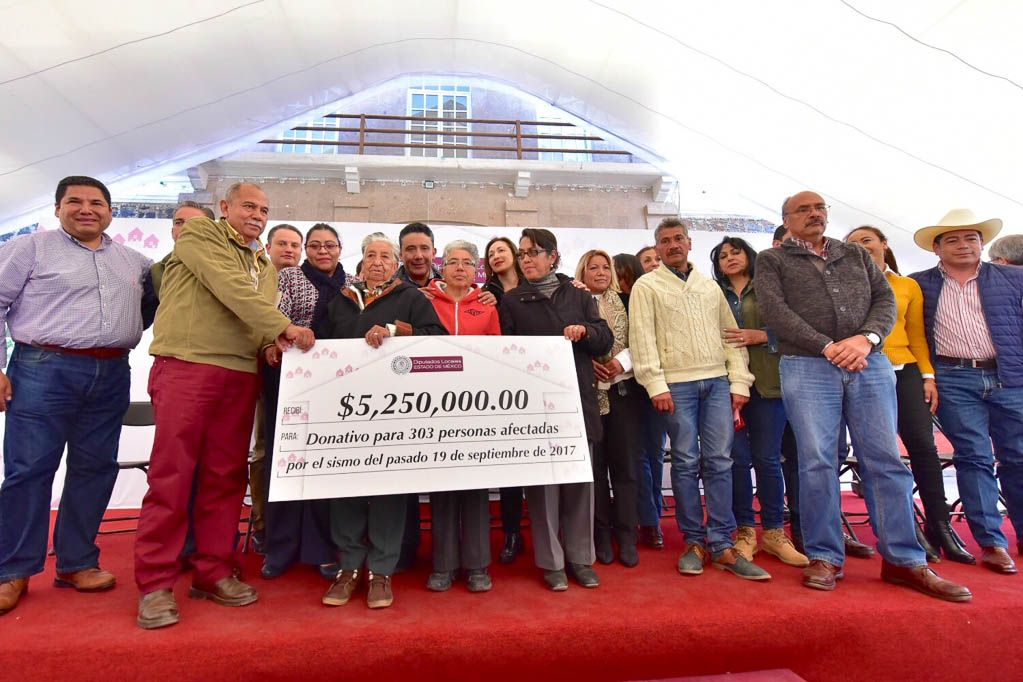 Para contribuir a la reconstrucción de viviendas afectadas por el sismo del 19S en Ocuilan y Joquicingo, la 59 Legislatura mexiquense, a través de un grupo plural de diputados, entregó directamente a los damnificados un donativo de 10.5 millones de pesos; fondo integrado con dos meses de salario de los 75 legisladores locales.Cabe recordar que el acuerdo para este donativo fue aprobado por todos los grupos parlamentarios: PRI, PRD, PAN, morena, Encuentro Social, Movimiento Ciudadano, Verde Ecologista, Nueva Alianza y PT.