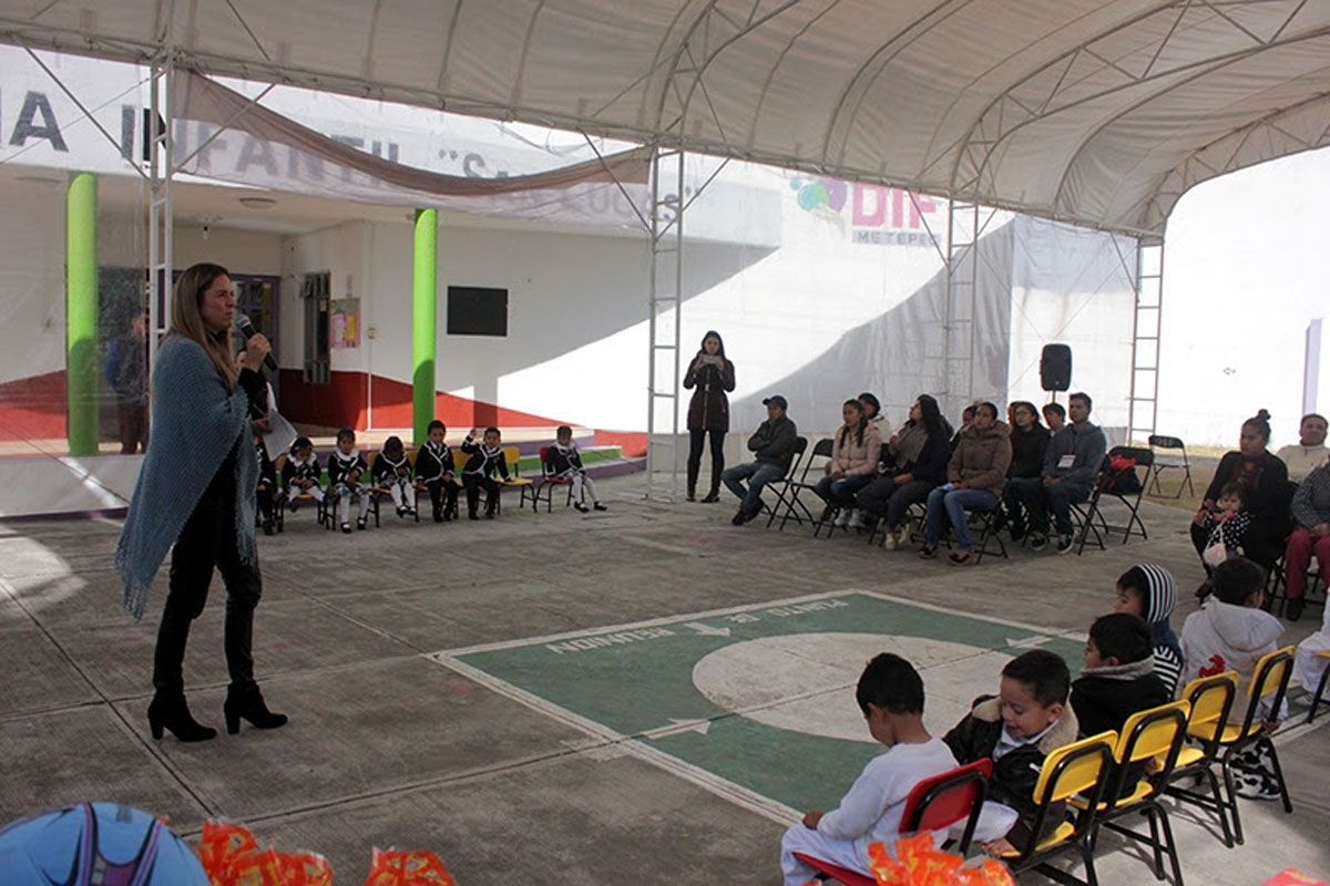 Pueblo Mágico de Metepec, México.- La suma de voluntades entre el Sistema municipal DIF de Metepec y la empresa de transporte público Colón Nacional, permitió el equipamiento de la Estancia Infantil que opera el organismo asistencial en San Lucas Tunco, con una techumbre para beneficio de más de 50 menores.