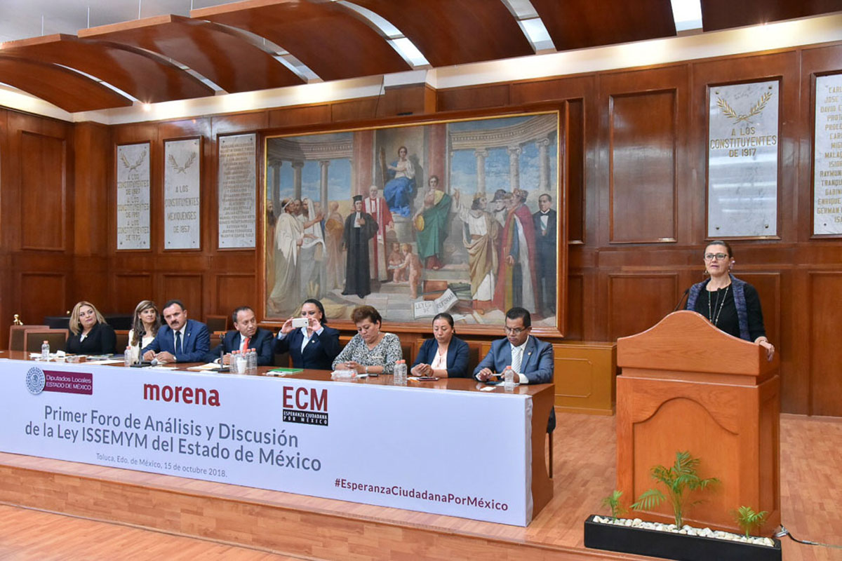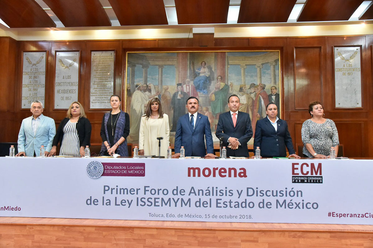 El Grupo Parlamentario de Morena en la 60 Legislatura estatal realizó el Primer Foro de Análisis y Discusión de la Ley de Seguridad Social para los Servidores Públicos del Estado de México y Municipios en el que escuchó los planteamientos de ciudadanos sobre este ordenamiento que entrará en vigor el próximo 1 de enero de 2019.