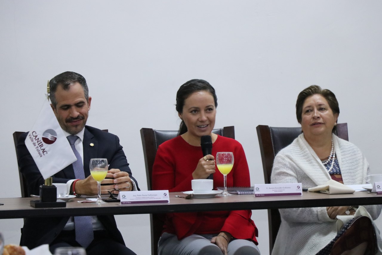 Toluca, Estado de México, 5 de noviembre de 2018. En el marco de la Sesión General del Consejo de Cámaras y Asociaciones Empresariales del Estado de México (Concaem) y de la Cámara Nacional de la Industria de Restaurantes y Alimentos Condimentados (CANIRAC), Aurora González Ledezma, Secretaria de Turismo estatal, se comprometió a trabajar en coordinación con el empresariado para posicionar al Estado de México entre los principales destinos turísticos sin litoral del país.