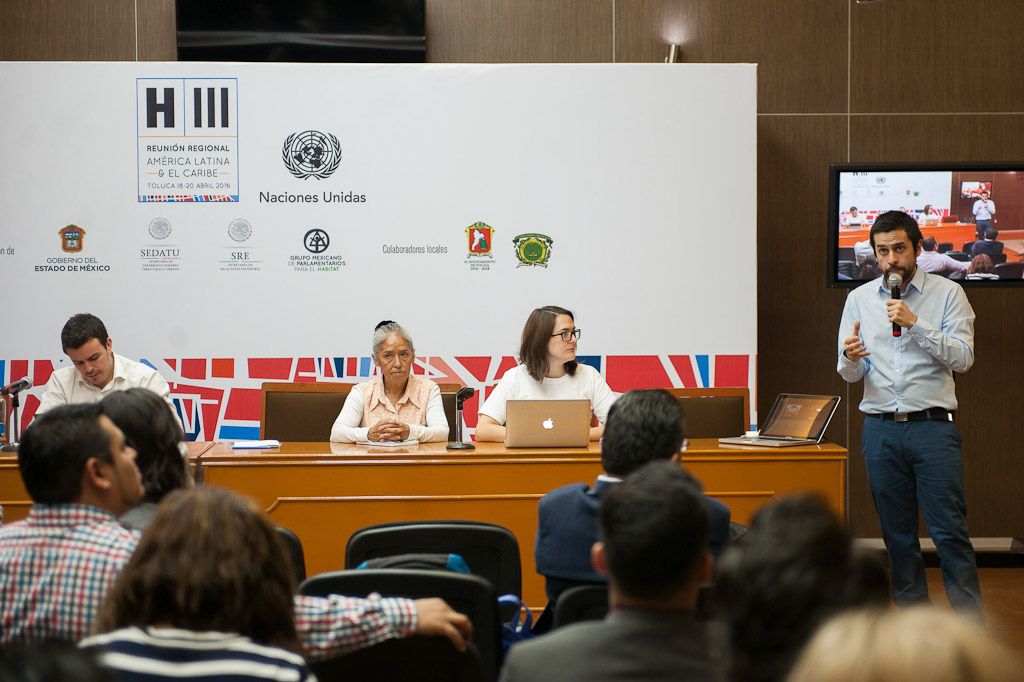 En la mesa abierta “Desafíos en la nueva agenda urbana desde el derecho a la ciudad: asentamientos informales y desigualdad”, Luis Bonilla Ortiz, director operativo de TECHO Internacional; Juan Pablo Duhalde, director del Centro de Investigación Social de TECHO en Latinoamérica, y Teodora Teresa Márquez Islas, delegada de Agostadero, Valle de Chalco, coincidieron en que es indispensable dotar a las ciudades de crecimiento semiurbano de una identidad basada en la participación de sus habitantes y el mejoramiento del entorno.