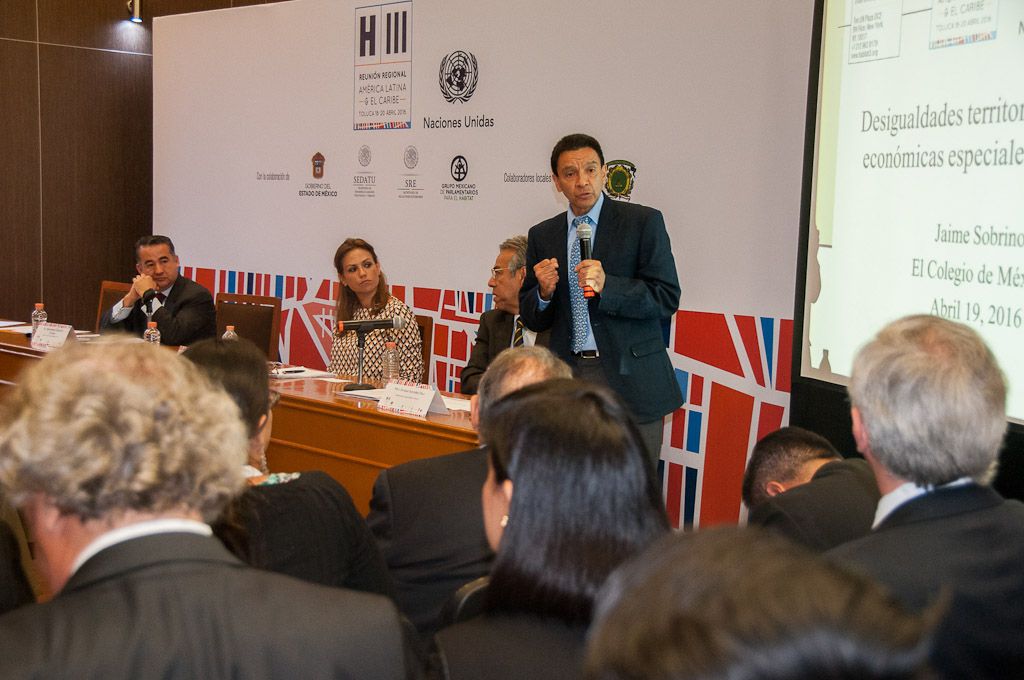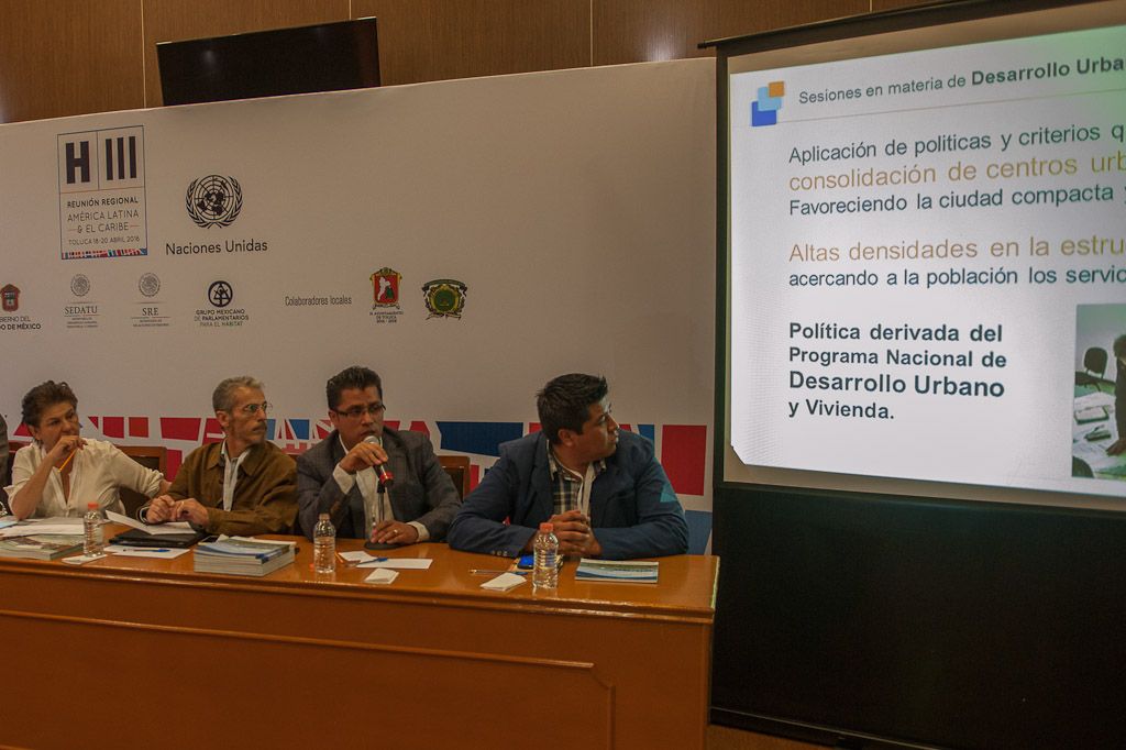 Como sede alterna de las actividades de la Reunión Regional de América Latina y el Caribe “Ciudades Habitables e Inclusivas: el Reto Global de la Urbanización Sostenible”, rumbo a Hábitat III, la 59 Legislatura mexiquense recibió a académicos, investigadores, organizaciones civiles, servidores públicos y ciudadanos de Haití, Argentina, Colombia, Cuba y Perú entre otros países, quienes abordaron temáticas como las zonas económicas especiales, la reinvención de la ciudad y el diseño urbano para discapacitados y adultos mayores, entre otros.En el Salón Narciso Bassols, donde también se desarrollaron las mesas abiertas “Desafíos en la nueva agenda urbana desde el derecho a la ciudad: asentamientos informales y desigualdad”, “Gobernanza metropolitana y consolidación de territorios” y “Proyecto Hábitat Jóven: CLIC! Hacia Hábitat III”, el subsecretario de Ordenamiento Territorial de la Secretaría de Desarrollo Agrario, Territorial y Urbano (Sedatu), Enrique González Tiburcio, moderó la mesa “Zonas económicas especiales y megaproyectos para el desarrollo regional ¿Motor o freno de la transformación económica y social?”.