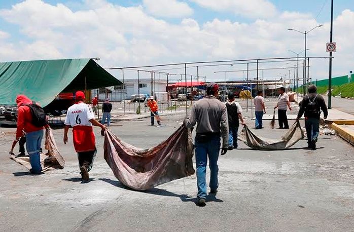 En este contexto, personal de la Subdirección de Procedimientos Administrativos instala vallas para garantizar que se mantenga libre de comercio informal las zonas de la explanada, entrada principal, puente y circuito del tianguis.