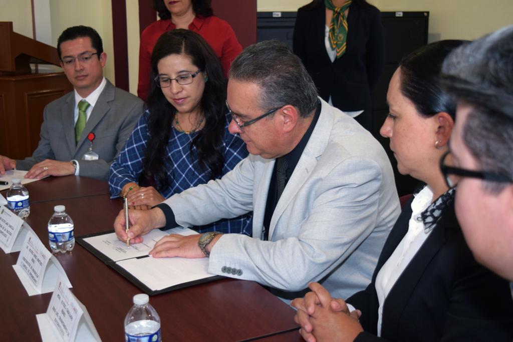 Firmaron este Convenio el Subdirector de Prevención y Control de Enfermedades del ISEM, Miguel Ángel Martínez Pérez, la Directora de la Facultad de Odontología de la UAEM, Edith Lara Carillo, y la Jefa del Departamento de Estomatología del ISEM, Hitzel Caballero Pérez.