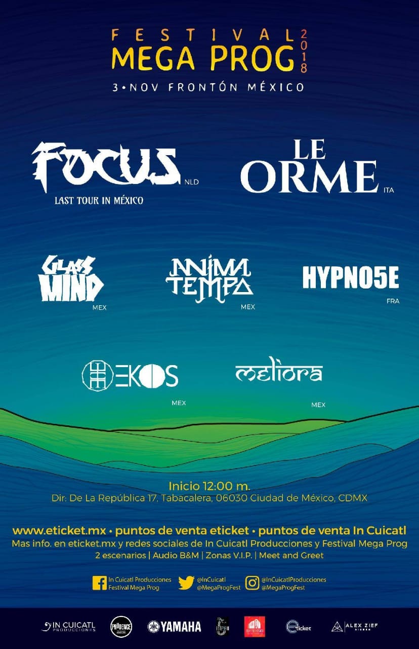 Las legendarias bandas Focus y Le Orme lideran un cartel que se antoja un verdadero festín para los amantes del rock progresivo y que se llevará a cabo el próximo 3 de noviembre en el Frontón México, a un costado del Monumento a la Revolución en la Ciudad de México.