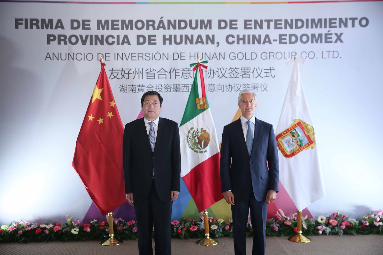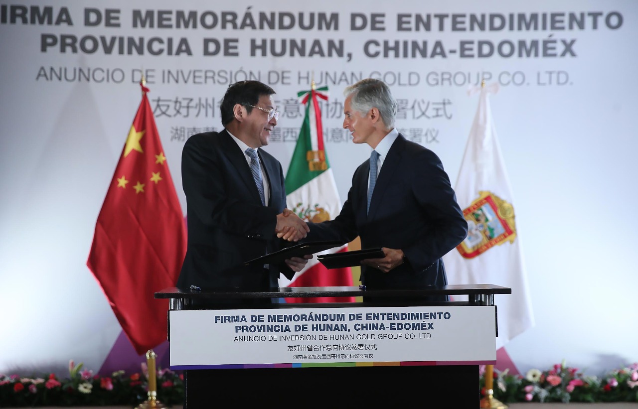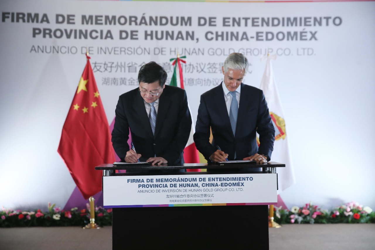 “Reconocer la confianza que ha mostrado y se muestra en nuestro estado, para que Hunan Gold Group, compañía de la Provincia de Hunan, haya elegido al Estado de México para esta inversión de un parque industrial”, señaló el mandatario mexiquense.