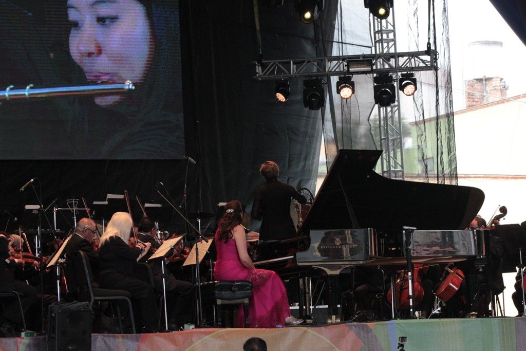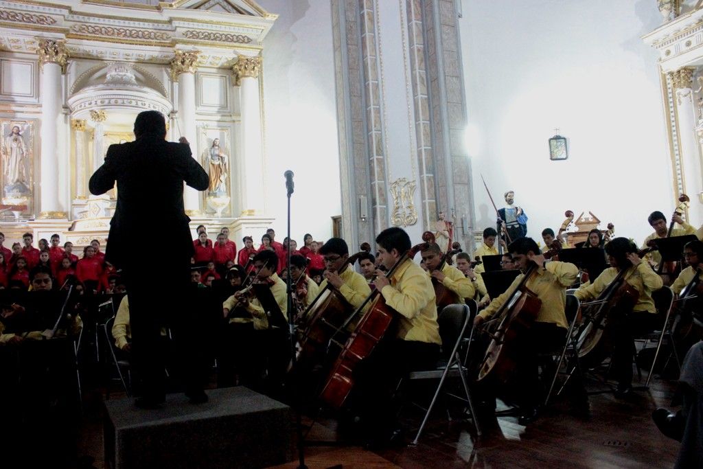 Mientras la Orquesta Sinfónica Esperanza Azteca Bicentenario, integrada por jóvenes de entre 7 y 18 años de edad provenientes de 13 municipios del Estado de México bajo la dirección del maestro Augusto Carrión Rodas, ofreció un rico repertorio que inició con Gloria Vivaldi y continuó con Promenade y la gran puerta de Kiev, Los piratas del Caribe, Star Wars, La Bikina, Guadalajara, México Lindo, Amor Eterno y Huapango.
