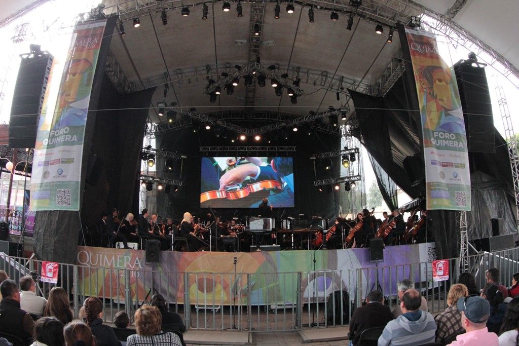 Bajo la dirección de la maestra Gabriela Díaz Alatriste, la Orquesta Sinfónica del Estado de México, ofreció un espectacular recital en el festival Internacional Quimera.Concertino y asistente, violines primeros y segundos, violas, violoncellos, contrabajos, flautas, oboes, corno inglés, clarinetes, fagotes, cornos, trompetas, trombones, tuba, timbales, percusiones, arpa y piano, cautivaron el escenario de la Plaza Juárez en Metepec, con la presentación de la OSEM que, como en cada recital desde 1971, dieron cuenta de la magnificencia de sonidos para el gusto de los asistentes que dos horas antes, ocuparon todo el auditorio para disfrutar de la prestigiada orquesta mexiquense.