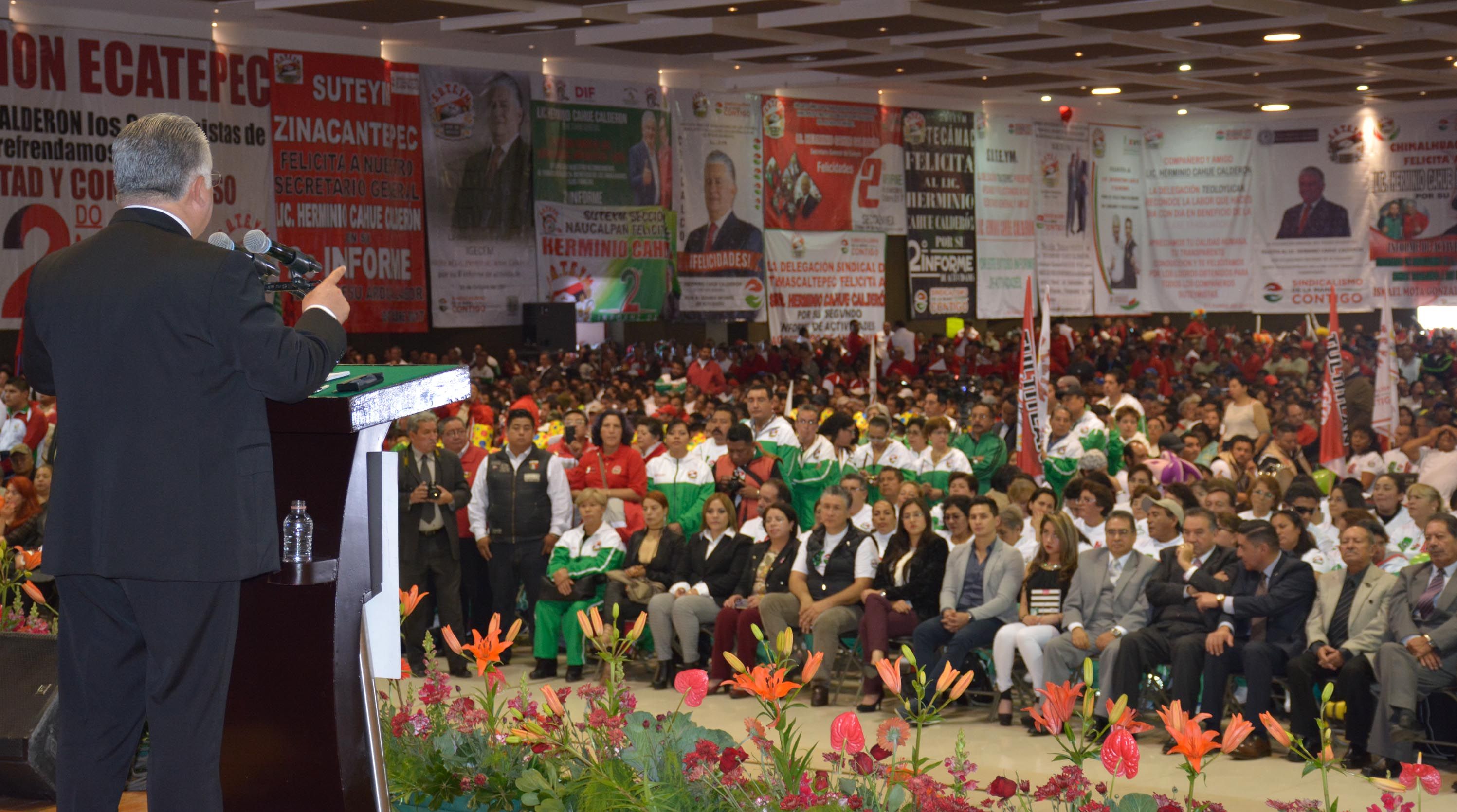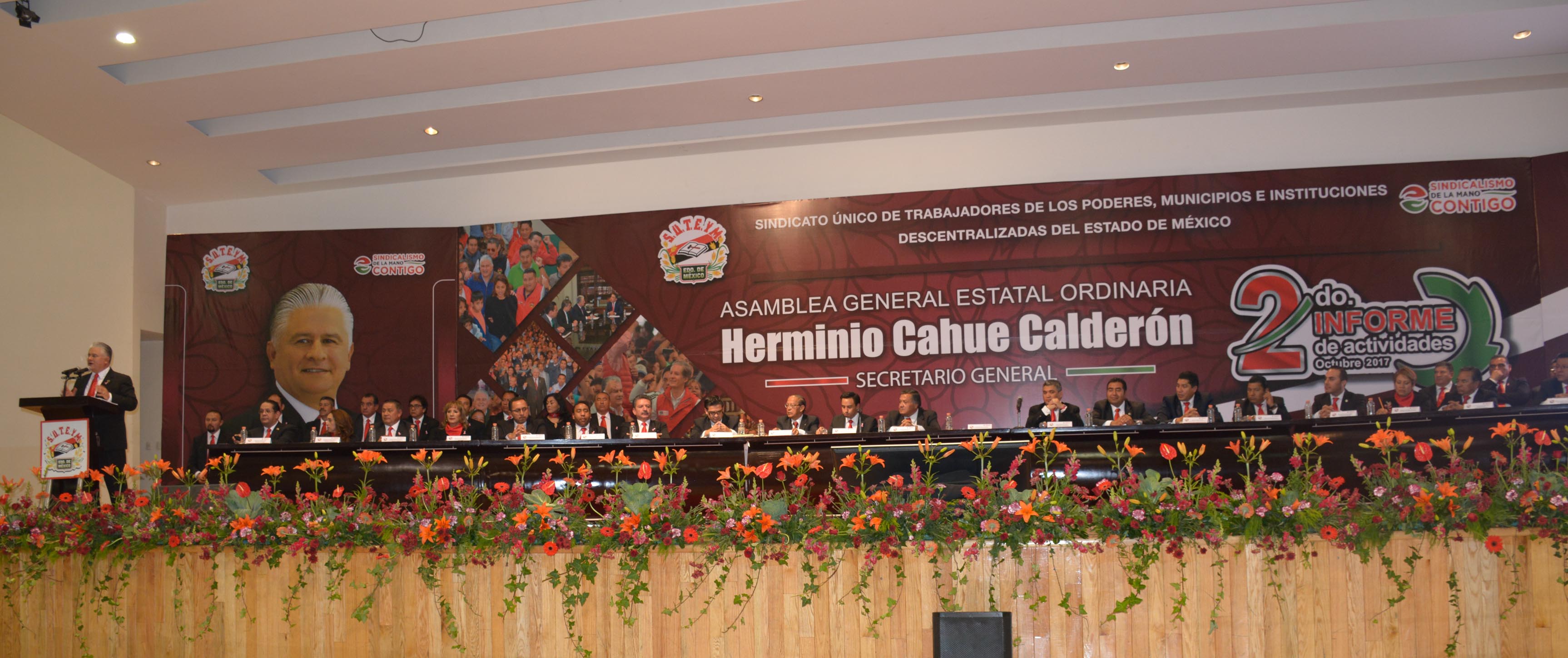 En Asamblea General Ordinaria, el Secretario General del SUTEYM, Lic. Herminio Cahue Calderón, rindió su Segundo Informe de Actividades, mismo que fue aprobado por unanimidad, y contó con la puntual asistencia de aproximadamente ocho mil delegados municipales, departamentales, secretarios seccionales, estructura sindical; así como, de ex secretarios generales de la organización, e invitados especiales.En el auditorio del SNTE, Cahue Calderón señaló que el informe es resultado del esfuerzo común, y gran desempeño del Comité Ejecutivo Estatal; destacó las actividades que se han realizado para acrecentar la cercanía, y cohesionar al gremio entorno a la identidad, valores y principios del sindicato.