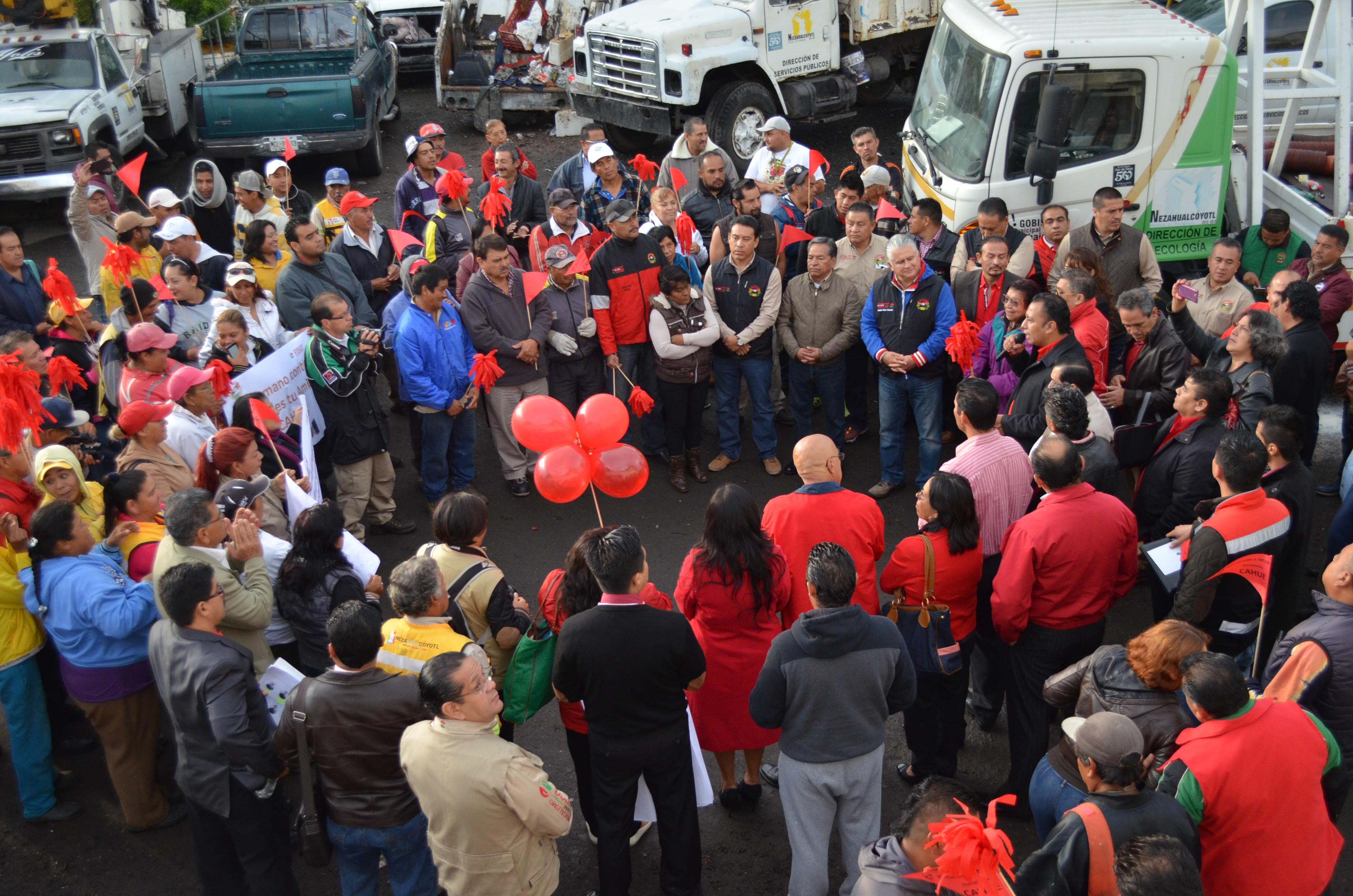Poniendo el ejemplo del “Sindicalismo de la mano contigo”, el Secretario General del Sindicato Único de Trabajadores de los Poderes, Municipios e Instituciones Descentralizadas del Estado de México (SUTEYM), Lic. Herminio Cahue Calderón, continúa acercándose a la clase trabajadora. En esta ocasión, y acompañado del Comité Ejecutivo Estatal, recorrió las áreas de: limpia y transporte; alumbrado, parques y jardines; imagen urbana, y el Palacio Municipal, para establecer comunicación con aproximadamente 700 trabajadores de los mil 800 suteymistas de este municipio.El líder sindical externó su ánimo por estar cerca de los suteymistas de Nezahualcóyotl, reconoció su esfuerzo por comenzar sus labores desde temprana hora. El dirigente dijo sentirse necesitado de recomponer el tejido social, y destacó que el sindicato y sus representados pueden enfrentar esta encomienda con los valores y principios que deben tener como seres humanos y como sindicalistas.