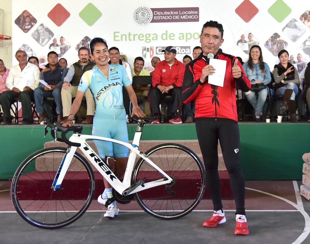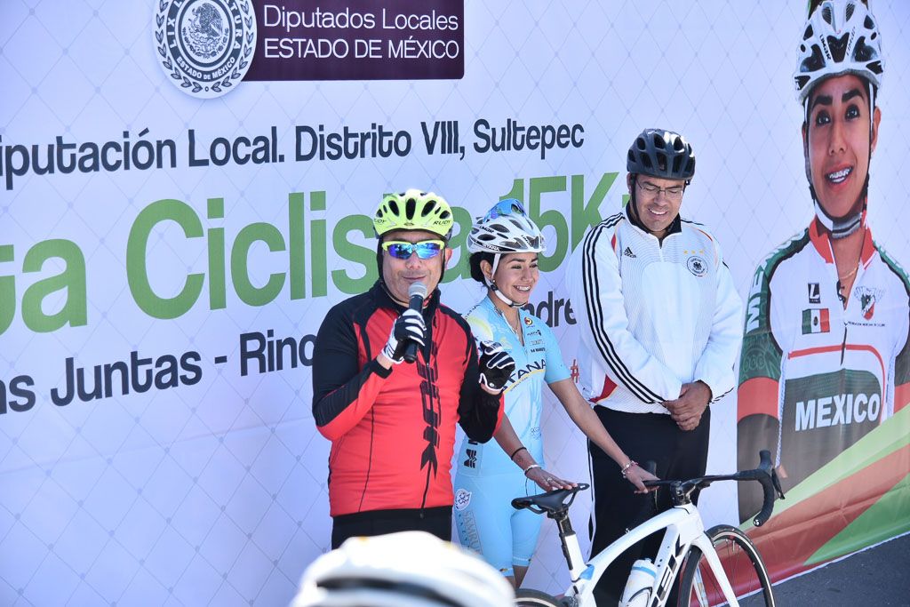 Durante poco más de una hora, el representante popular del VIII distrito electoral local con sede en Sultepec recorrió con la deportista y 70 ciclistas más, entre ellos integrantes del equipo Temascalli Racing Team, con el que la atleta inició su carrera deportiva, el trayecto de 15 kilómetros por comunidades localizadas en las faldas del Nevado de Toluca y que concluyó en el poblado de Rincón de San Andrés, donde también entregó recursos para obras sociales en 10 comunidades de Temascaltepec y siete de Texcaltitlán.