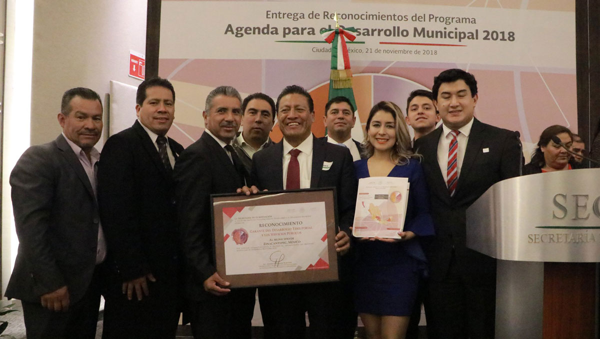 - Mediante el Programa “Agenda para el Desarrollo Municipal” el alcalde de Zinacantepec, Manuel Castrejón Morales, recibió el reconocimiento “Garante de la Planeación del Territorio y los Servicios Públicos”.