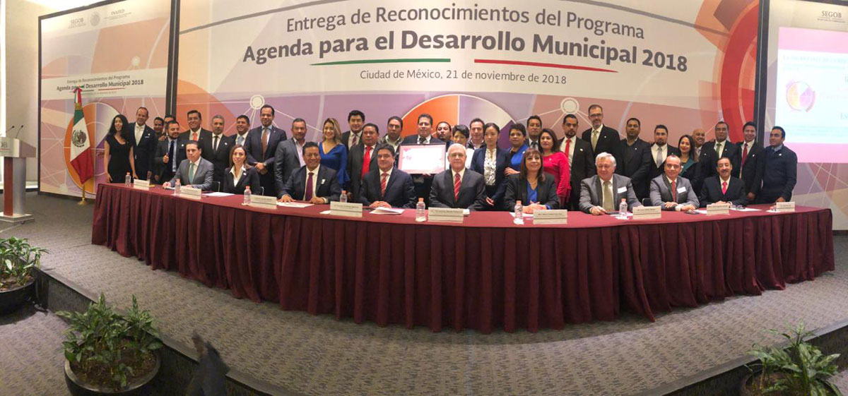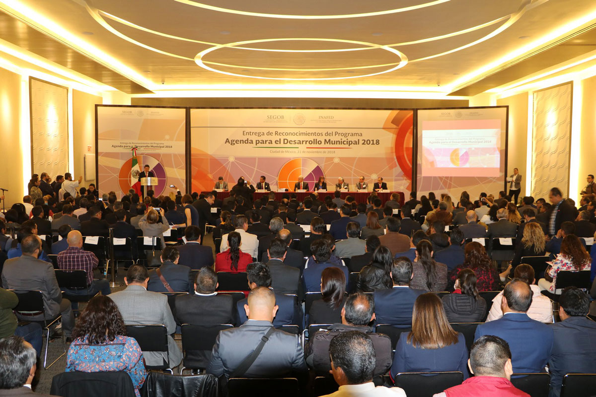 Ciudad de México.- La Secretaría de Gobernación (SEGOB) a través del Instituto Nacional para el Federalismo y el Desarrollo Municipal (INAFED) llevó a cabo la “Entrega de Reconocimientos del Programa Agenda para el Desarrollo Municipal 2018”, en el Salón Revolución del Conjunto Bucareli, con el propósito de reconocer a los municipios de 28 estados de la República Mexicana que participaron voluntariamente en esta edición 2018.