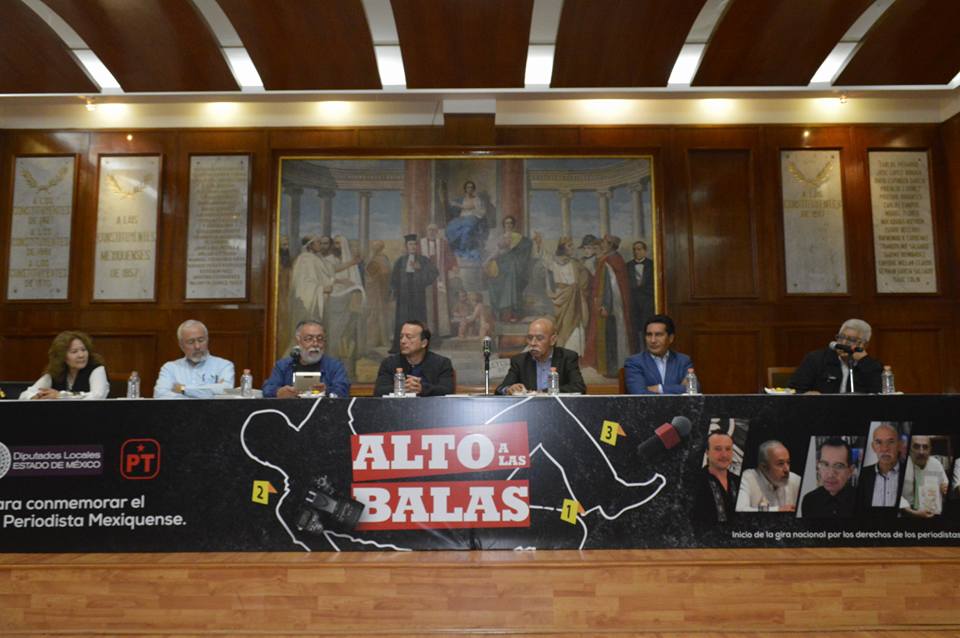 Mediante un panel de periodistas organizado por el grupo parlamentario del Partido del Trabajo (PT) para conmemorar el Día del Periodista Mexiquense, dio inicio a nivel nacional la gira ALTO A LAS BALAS que pretende alzar la voz para que los derechos de los comunicadores, reporteros, fotoperiodistas sean salvaguardados de forma preventiva y no después de que son agredidos o asesinados.