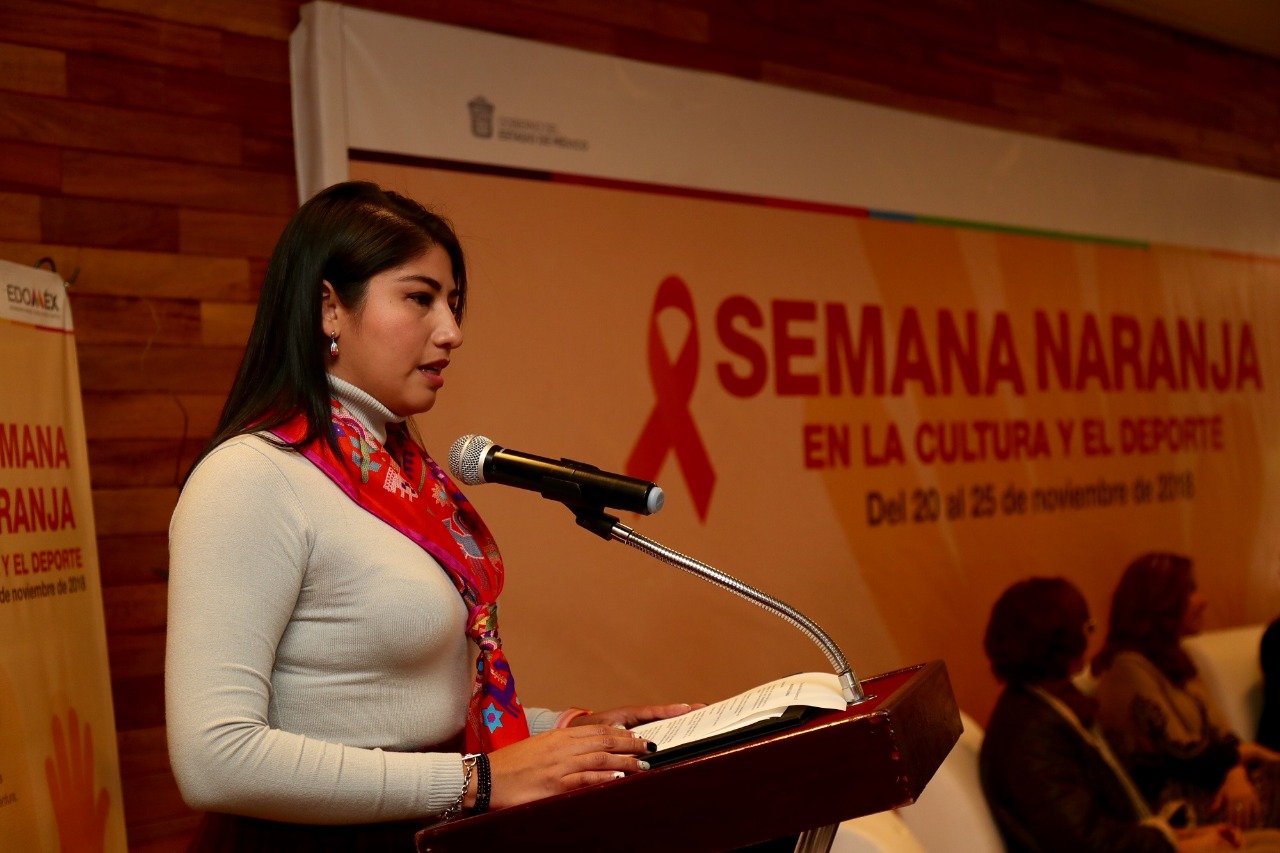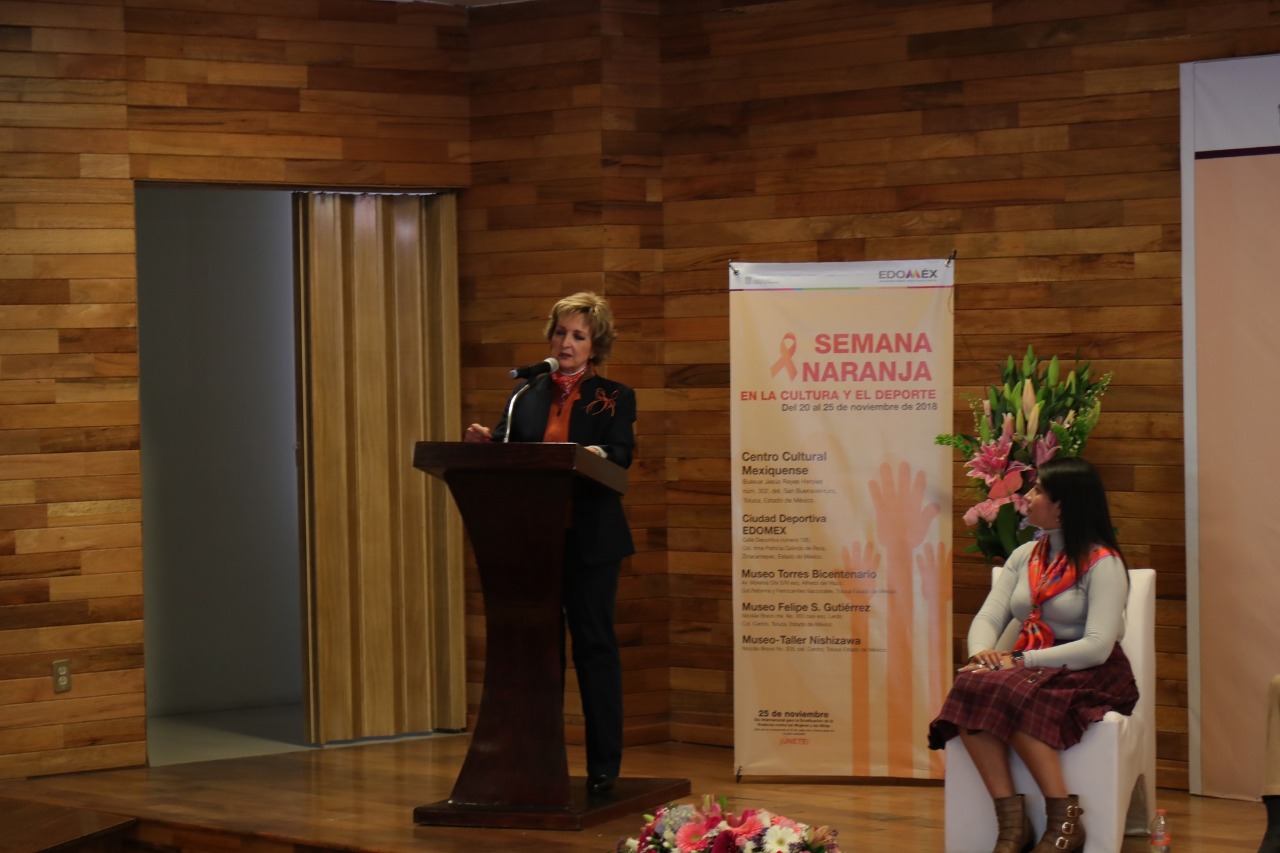 En ese sentido, hasta el domingo 25 de noviembre se llevará a cabo la Semana Naranja, misma que inició en el Museo Torres Bicentenario, con la asistencia de Marcela González Salas, Secretaria de Cultura, Melissa Vargas, titular del CEMyBS, Ivett Tinoco, Directora general de Patrimonio y Servicios Culturales, Alejandra Guerra, Titular de la Unidad de Género, Carlos Acra, Director de Deporte, así como Mílada Bazant, Investigadora del Colegio Mexiquense.