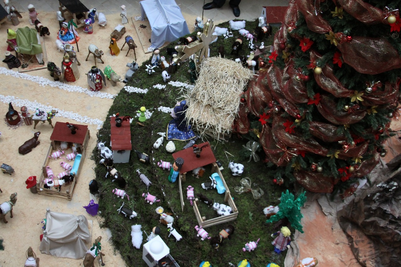 Entre los ornamentos, resalta un nacimiento compuesto por más de 160 figuras, las cuales fueron elaboradas, fuera del horario laboral, por las y los servidores públicos de la Dirección General, el Archivo General de Notarías y de la Oficina Regional de Toluca, una de las 19 oficinas registrales del IFREM.