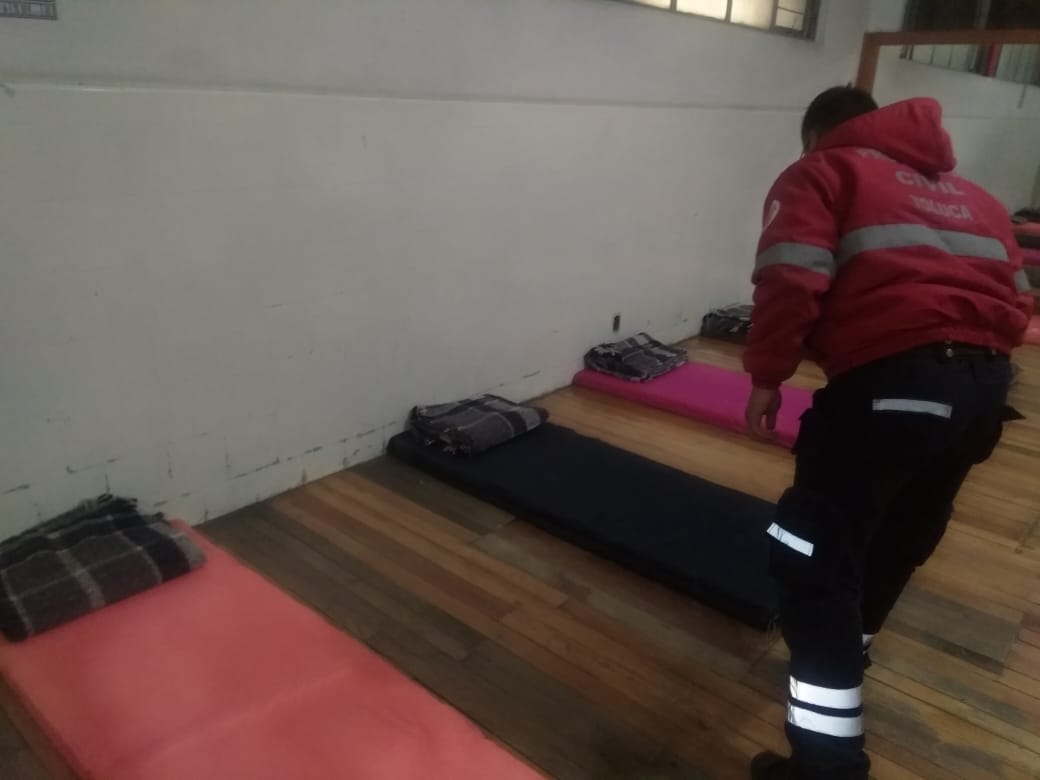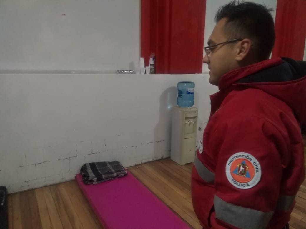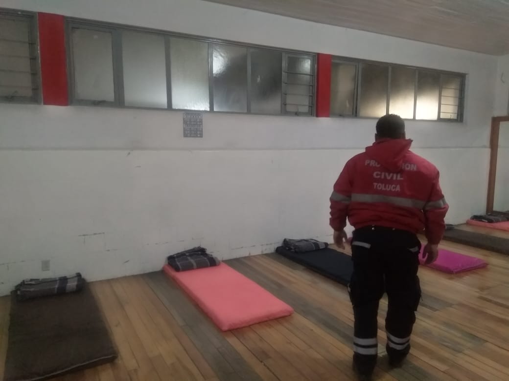 Toluca, Estado de México.-Con motivo de las bajas temperaturas registradas la administración municipal de Toluca, a través de la Coordinación de Protección Civil y Bomberos puso en marcha el Operativo Saturno y habilitó un albergue invernal temporal en el Deportivo Agustín Millán Vivero, ubicado en Calle Andrés Quintana Roo esquina Miguel Hidalgo, en un horario de 20:00 a.m. a 07:00 a.m., el cual tiene una capacidad de alojamiento de 500 personas.