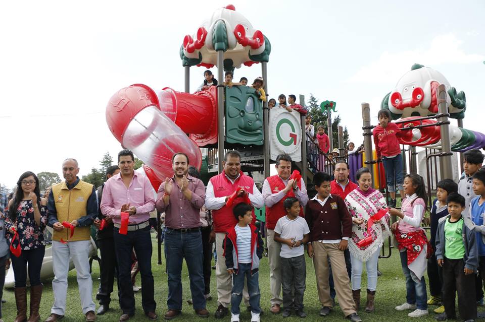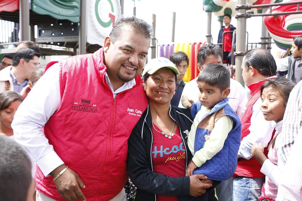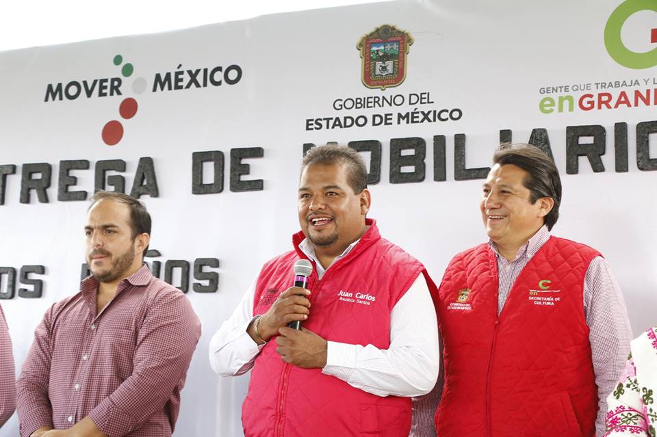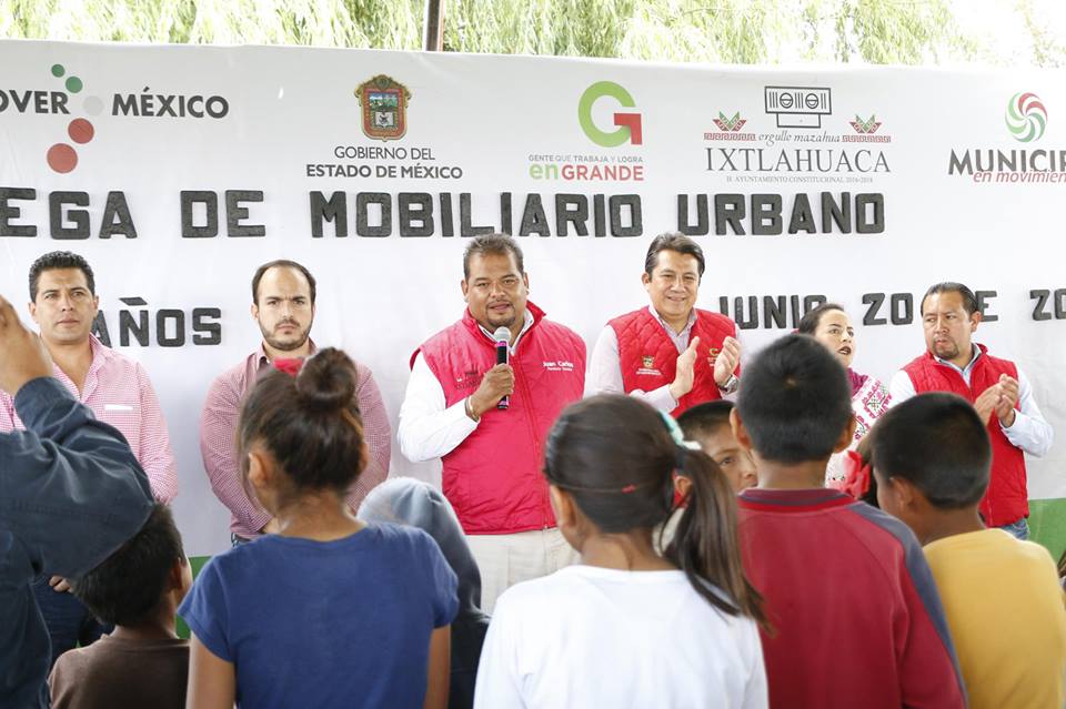 Los ixtlahuaquenses merecen mejores espacios para disfrutar con su familia, mejores espacios para estudiar y desarrollar todas sus potencialidades, aseguró el alcalde Juan Carlos Bautista Santos quien conjuntamente con miembros del Cabildo, y acompañados del Dr. Felipe Serrano Llarena, Director General de Atención a Entidades Federativas de la oficina de la Presidencia de la República, entregaron mobiliario urbano, consistente en juegos infantiles para los niños y niñas de la comunidad de Jalpa de los Baños.Posteriormente, también acompañados por el Dr. Eduardo Gasca Pliego, presidente del Gabinete Región 8 Ixtlahuaca y autoridades educativas, el edil y el funcionario federal entregaron el suministro y aplicación de pintura vinílica acabado mate, suministro y aplicación de impermeabilizante prefabricado, suministro y colocación de malla ciclónica altura de 1.50 m, rehabilitación de instalación eléctrica, suministro y colocación de loseta cerámica de 40 x 40 cms., rehabilitación y mantenimiento de techumbre en plaza cívica en la Escuela Primaria “Salvador Díaz Mirón”, en la comunidad de San Pedro de los Baños.
