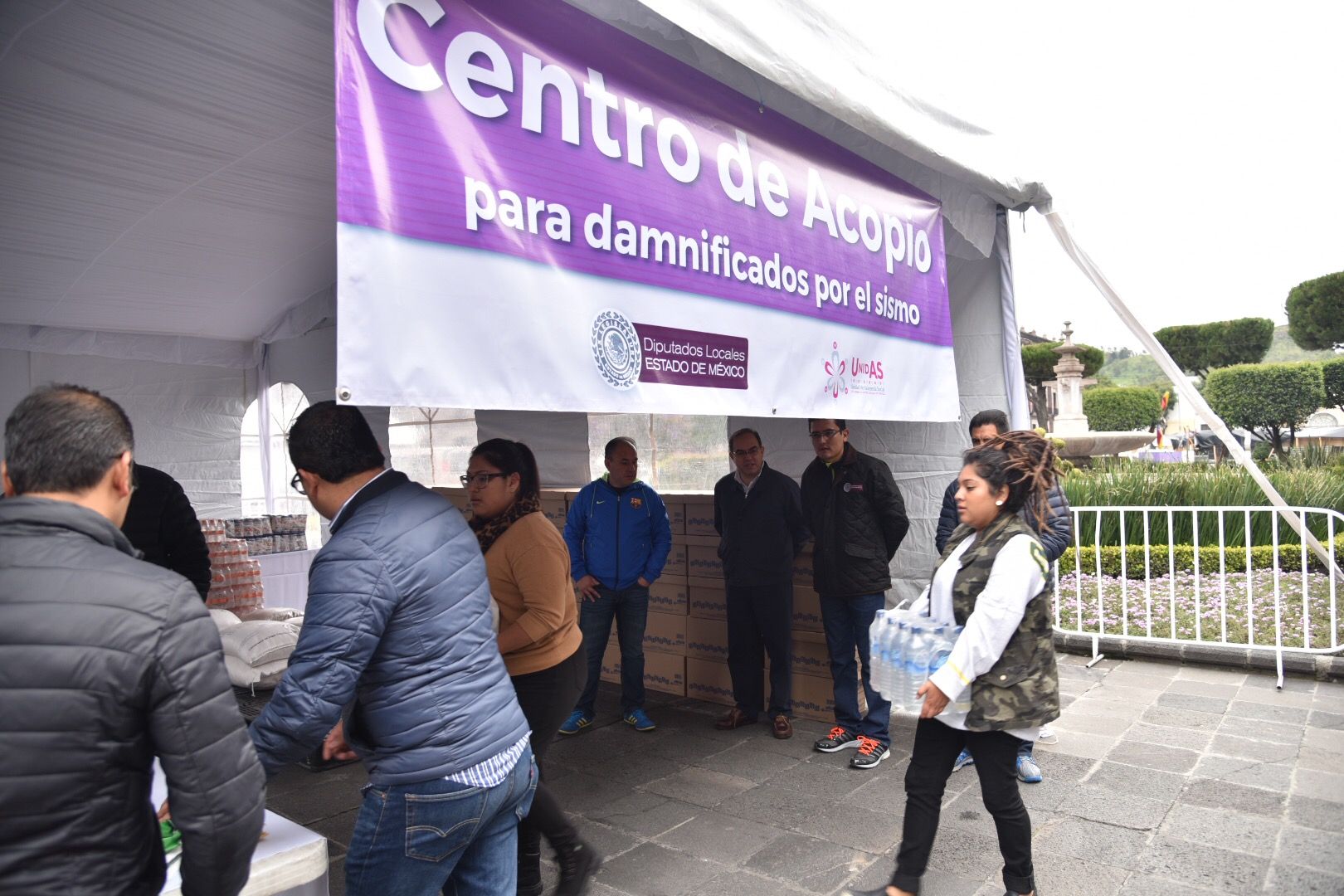 El Poder Legislativo del Estado de México y su Unidad de Asistencia Social (Unidas) hacen un llamado a la población a donar en apoyo de los damnificados por el sismo del pasado jueves, a través del centro de acopio que la 59 Legislatura instaló a un costado de la Plaza de los Mártires de Toluca.Este centro de acopio, localizado frente al edificio sede de la Cámara de Diputados, seguirá dando servicio en un horario de 10:00 a 14:00 horas este fin de semana, y de 09:00 a 18:00 horas el lunes 11 de septiembre.