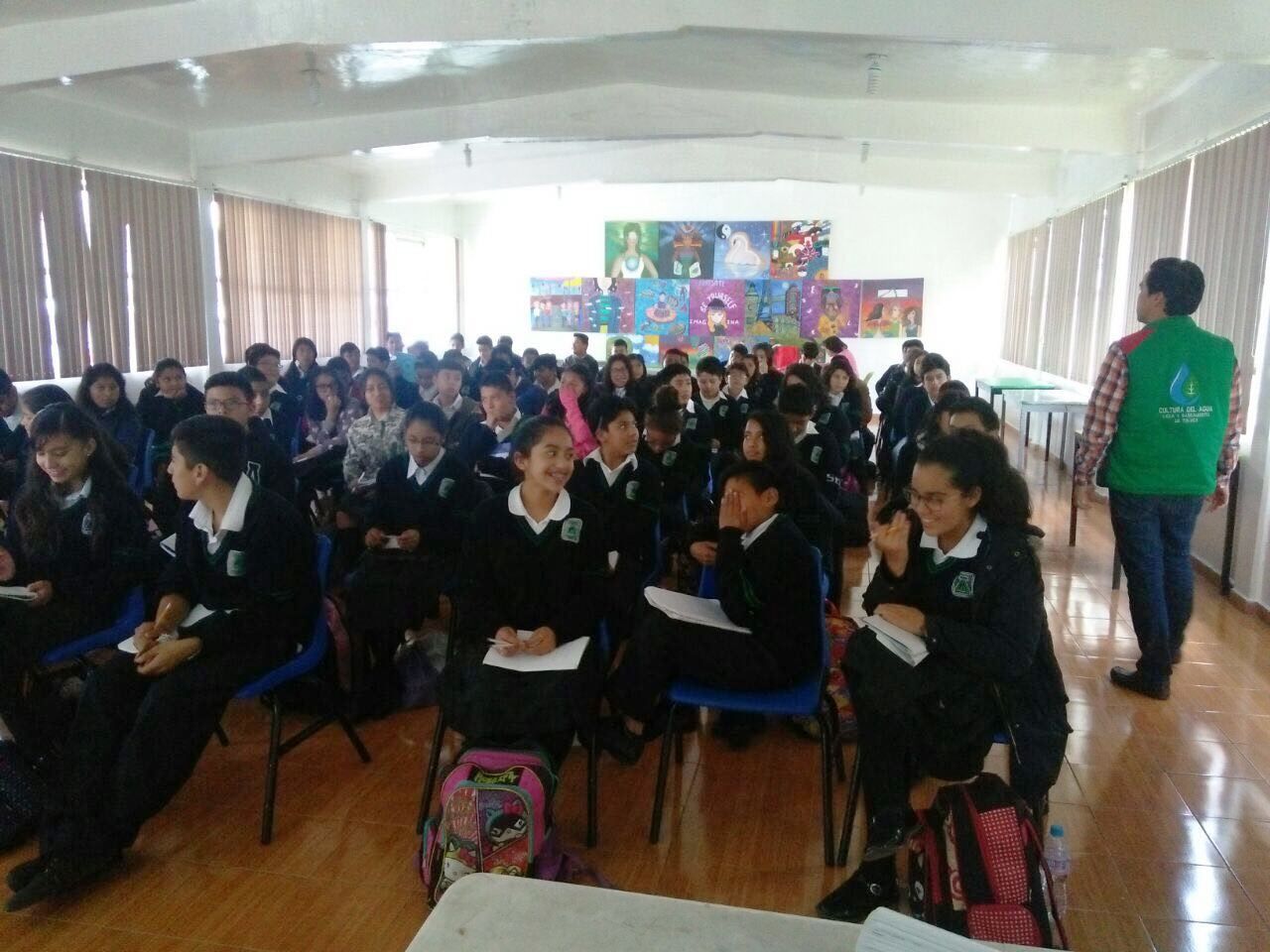 Con el objetivo de difundir la importancia del cuidado y uso racional del agua, como paso inicial en la construcción de una cultura medio ambiental, 225 alumnos de la Escuela Secundaría Número 13, “Héroes de Chapultepec”, asistieron a la conferencia “Situación Actual del Agua en Toluca” a cargo de servidores públicos de la administración municipal.Esa acción de concientización y conservación, a cargo del Organismo de Agua y Saneamiento de Toluca, contribuye a fomentar entre la niñez y juventud un nuevo enfoque ambiental en beneficio de las actuales y futuras generaciones, así como evitar la contaminación de ríos, entre otros cuerpos hídricos.