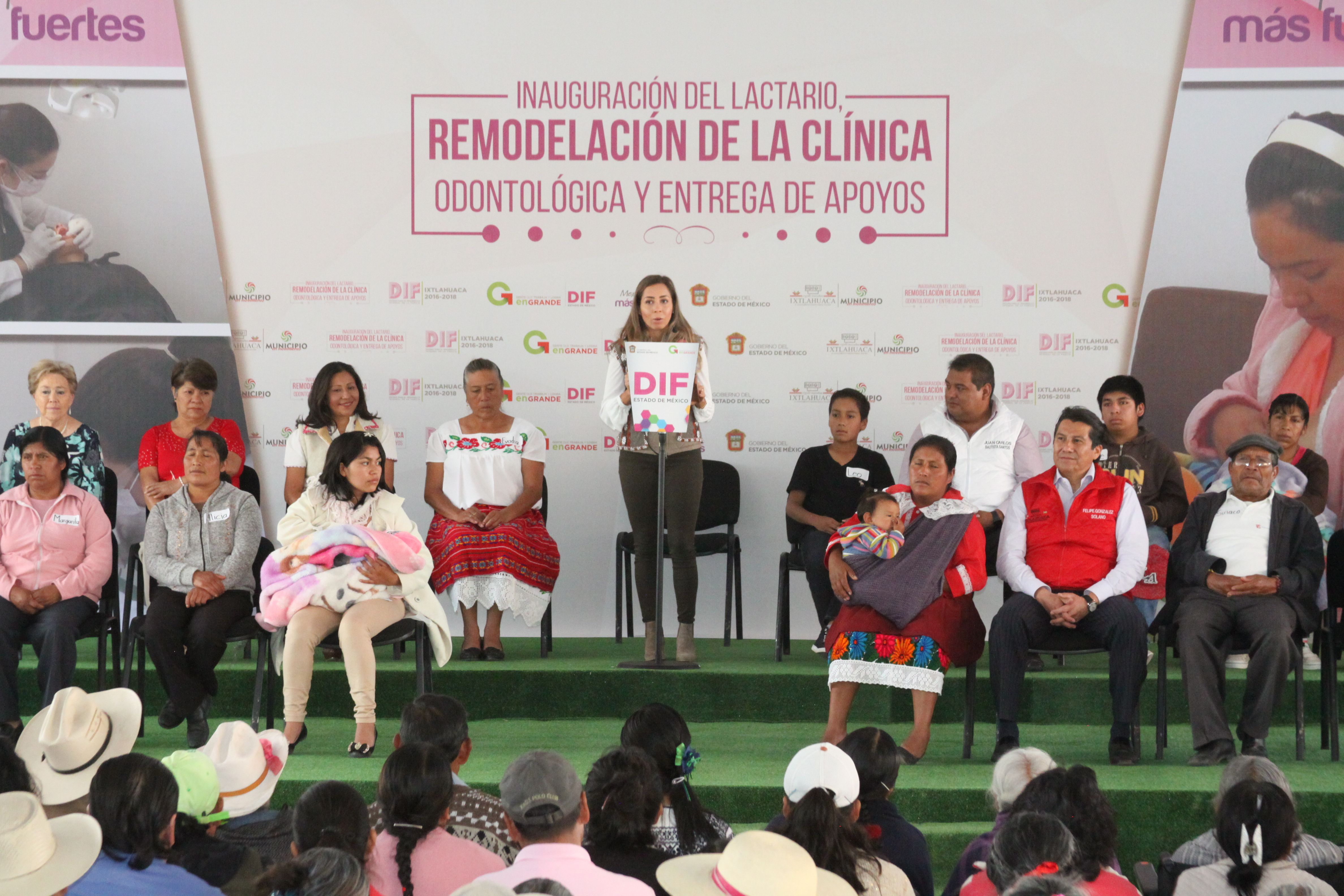 Durante una visita por el municipio, Isis Ávila Muñoz, presidenta honoraria del DIF Estado de México, inauguró una sala de lactancia, la remodelación de la clínica odontológica del DIF municipal y entregó apoyos en beneficio de más de 6 mil hogares.