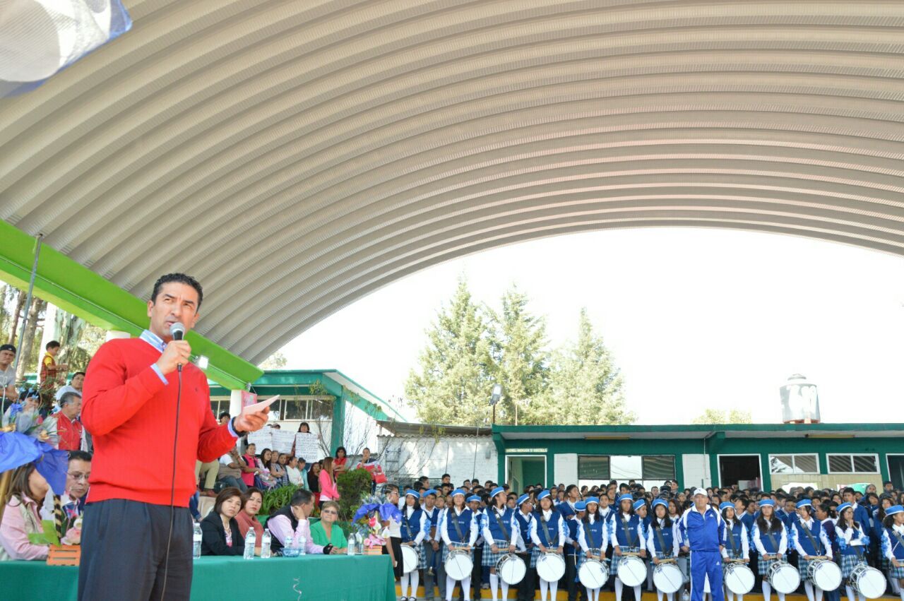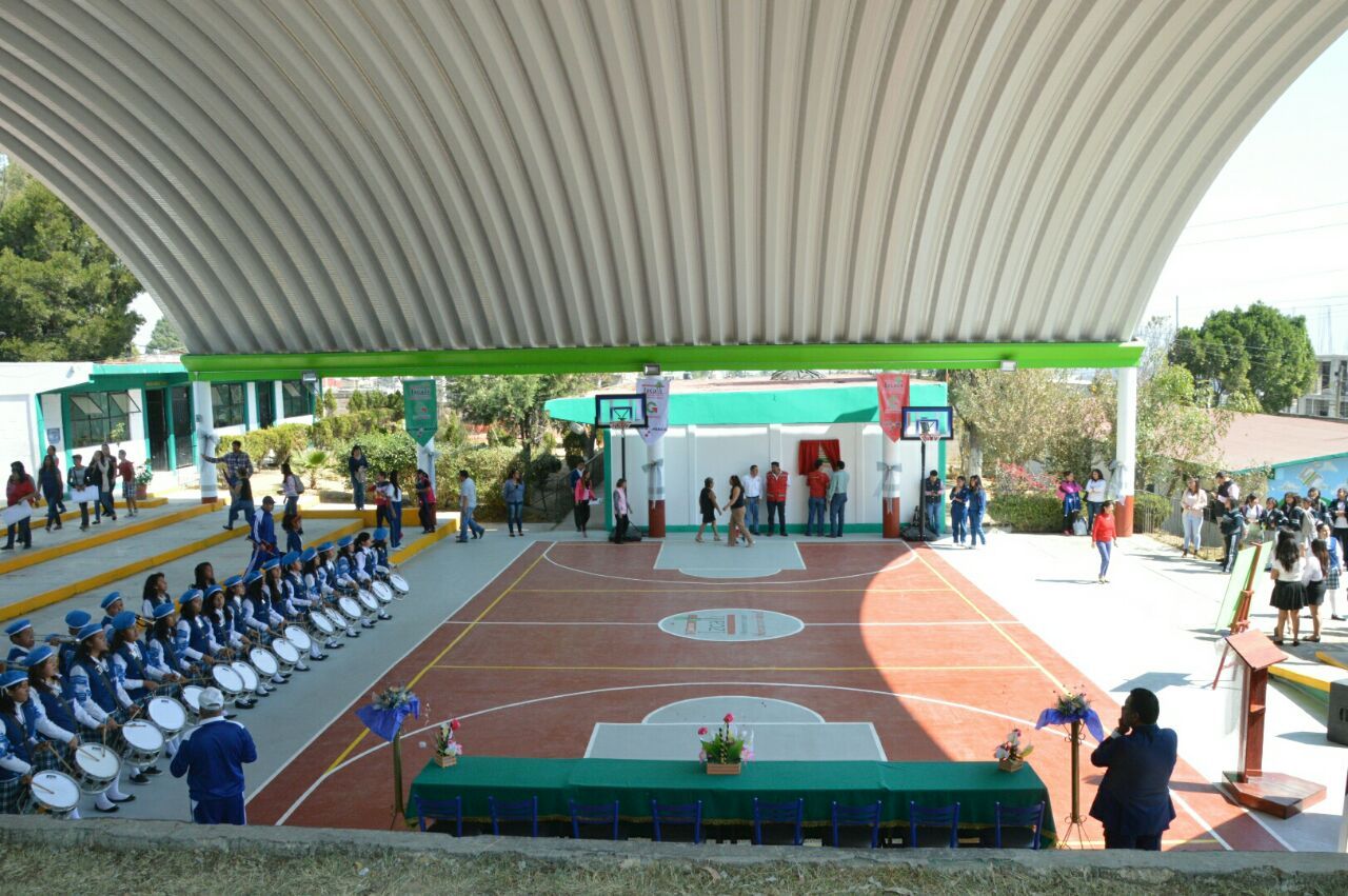 El Alcalde de Cuautitlán Izcalli, Víctor Estrada Garibay, inauguró un arcotecho y cancha de usos múltiples en la Escuela Secundaria 619 “Benito Juárez”, en la colonia Santa María Guadalupe Las Torres, donde anunció que las techadumbres también serán instaladas en algunos espacios públicos a fin de incentivar la sana convivencia y la actividad física entre los habitantes.