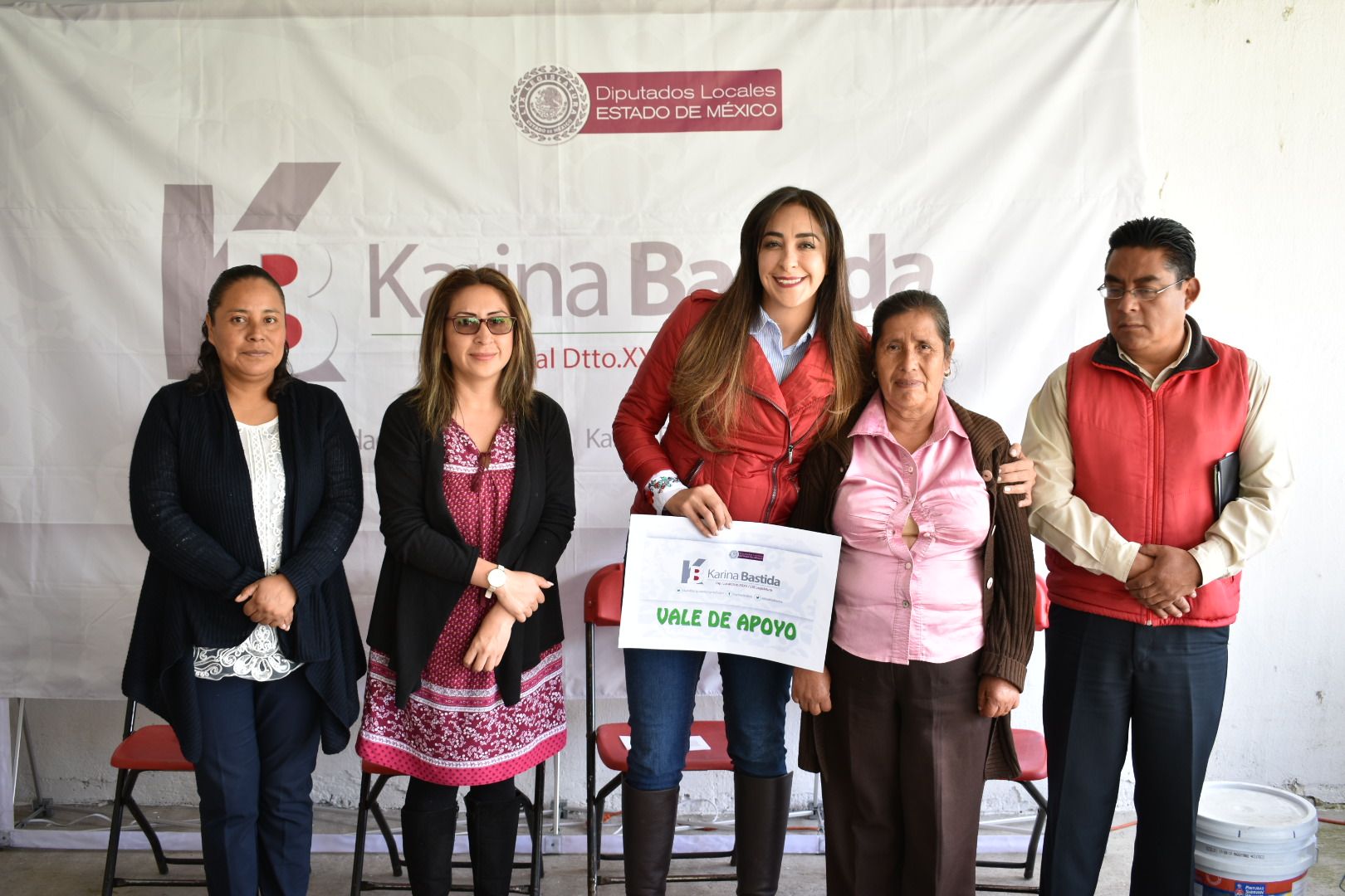 La diputada Karina Bastida Guadarrama (PRI), representante del XXXV distrito electoral local, atendió 27 solicitudes de apoyo de infraestructura urbana en beneficio de más de siete mil vecinos del municipio de Chapultepec.Durante la entrega de los recursos, consistentes en bultos de cemento, tabique, arena, grava, pintura, impermeabilizante, láminas y tinacos, la legisladora local destacó su compromiso con los habitantes de este municipio, así como de Metepec y Mexicaltzingo que integran el distrito que representa en la 59 Legislatura estatal.