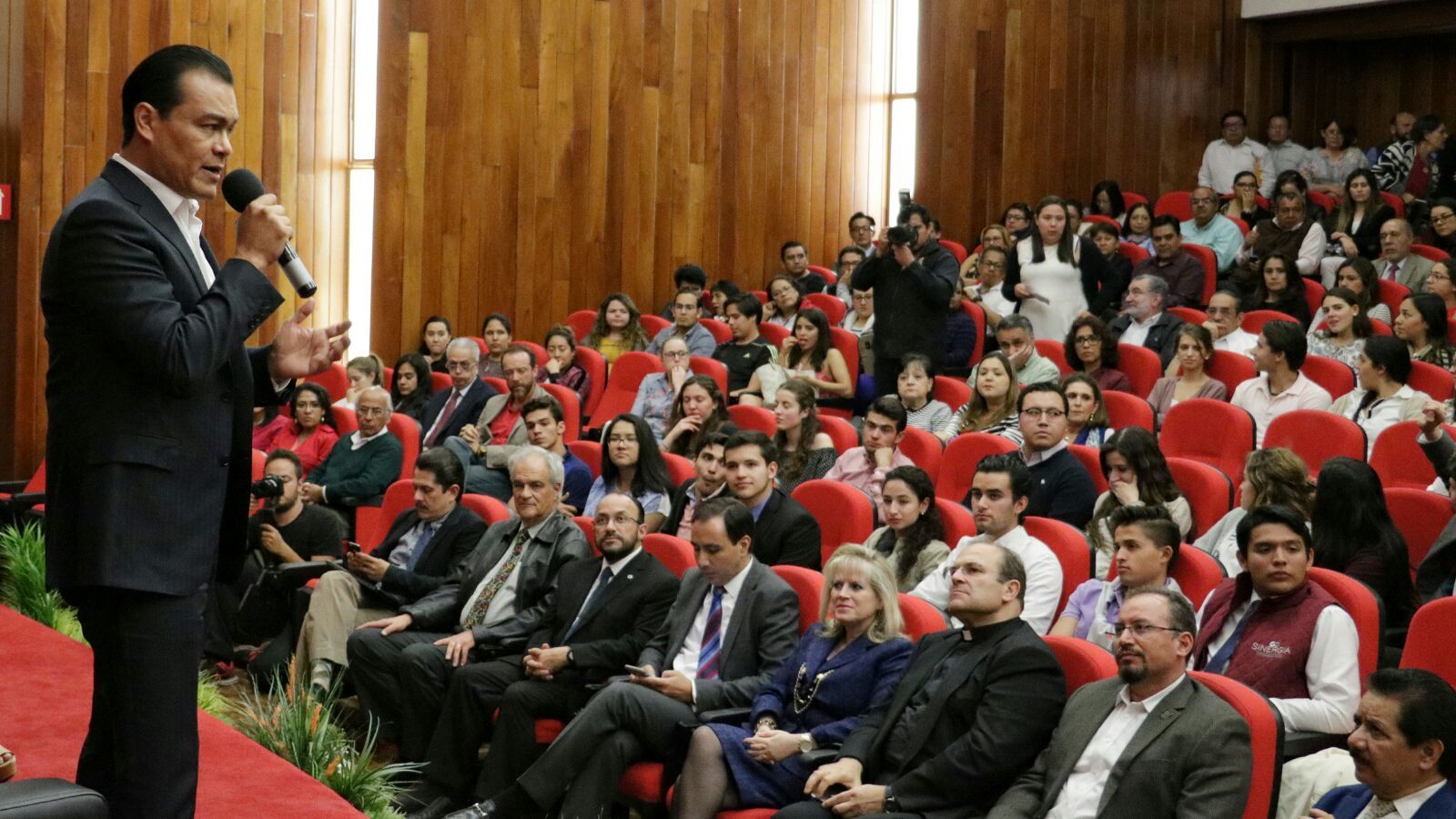 En el encuentro con el rector de dicha institución, Padre Cipriano Sánchez García, el perredista contó su experiencia como joven sin oportunidades, migrante y sus inicios en la administración pública, en la cual empezó con la ayuda que dio a un vendedor ambulante para evitar que inspectores municipales le quitaran su mercancía.