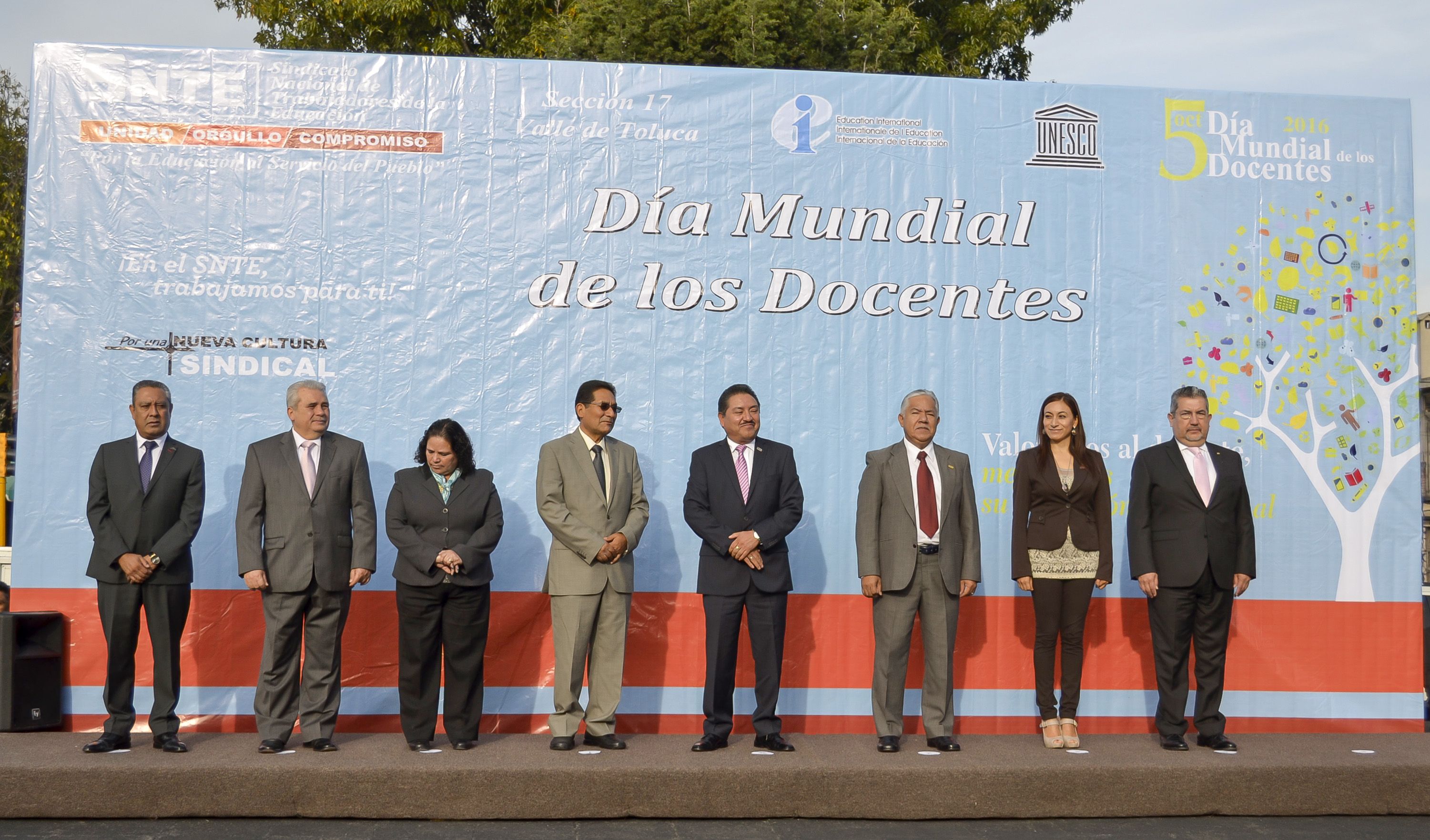 El secretario general de la Sección 17, Valle de Toluca del Sindicato Nacional de Trabajadores de la Educación (SNTE), Gustavo Michua y Michua indicó que la mejor forma de celebrar el Día Mundial del Docente es poniendo el ejemplo en los salones de clase y demostrando con hechos el compromiso con la educación y los derechos de los niños y jóvenes a una enseñanza de calidad.El docente era, es y será fundamental en la construcción de un mejor futuro para los pueblos, después de una década se reconoce que a 50 años de esta recomendación o reconocimiento es necesario apoyar al maestro como actor fundamental en el cumplimiento del desarrollo sostenible.