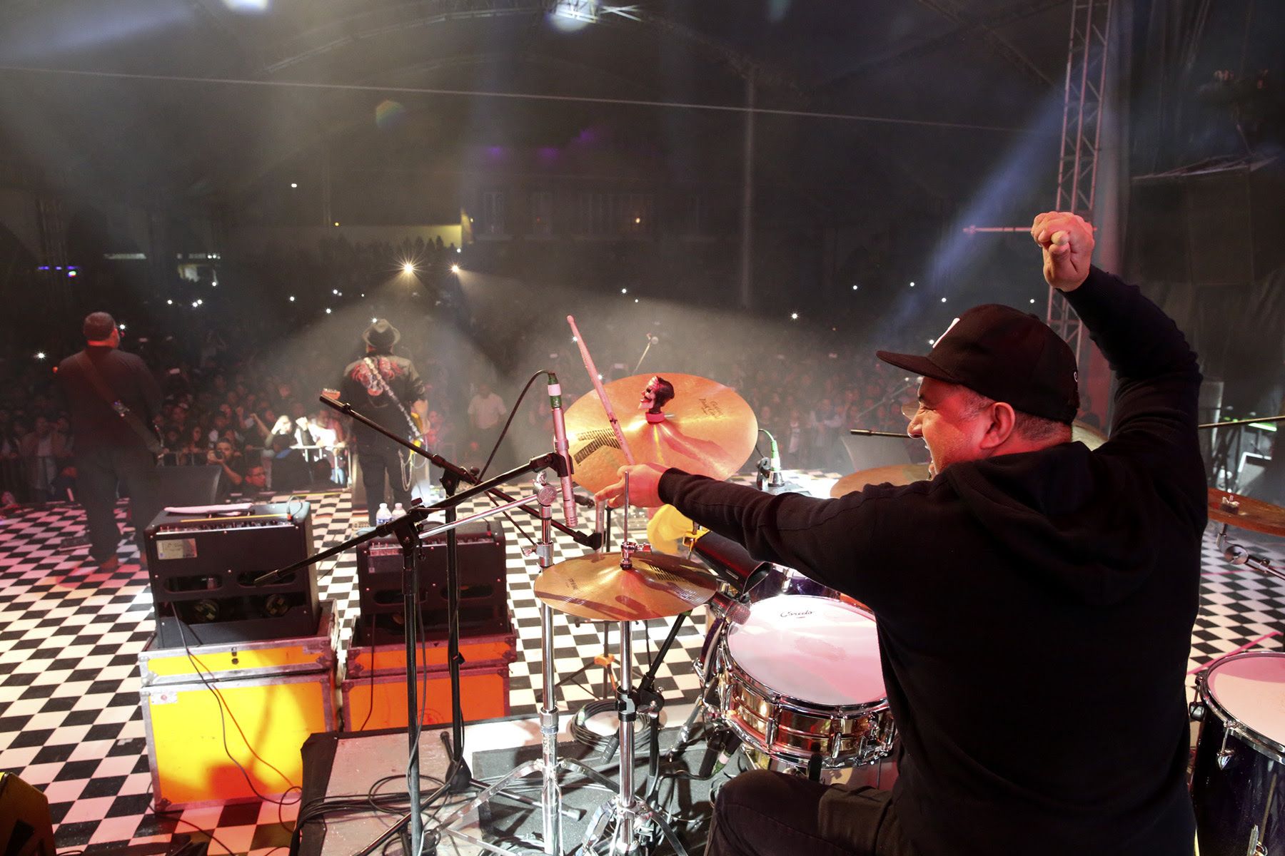 Desde el principio, la gente estaba emocionada y no dudaron en cantar y saltar en temas como Cumbia poder, Timbalero, Rebajada, un cover de José José, Song bomb, Tonta canción, Columpio, Rehilete, Danger, Time bomb y Riot.